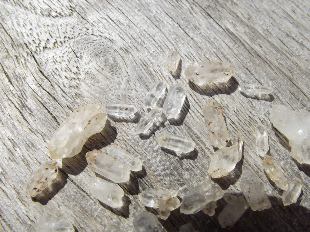 3. On peu supposer qu'il s'agit des quartz des couches "marnes et caillasses du lutétien", qu'on retrouve non loin. http://ficheinfoterre.brgm.fr/Notices/0182N.pdf Sinon, pourquoi pas du gypse mal dessiné ? Quartz des marnes et caillasses lutétiennes de l'Oise :