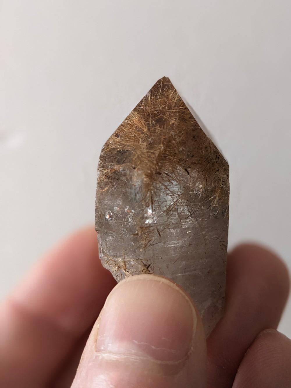 11. @jacky quartz Merci! Pour les inclusions, j'ai clairement deux matériaux: à la loupe c'est flagrant, des sulfosels noirs brillants et la rutile. Même dans la grosse pointe, on voit quelques fibres de sulfosels. Mais ces inclusions sont un peu brouillonnes, moins organisées que dans tes magnifiques quartz de la Lauzière 😉
