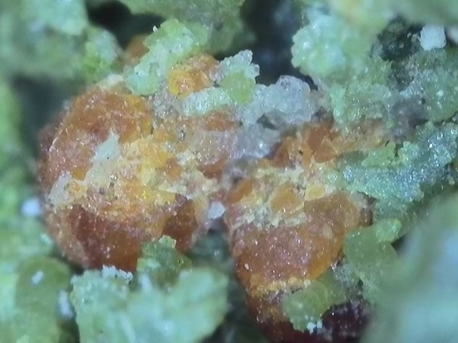 (OK. Mais sur la photo il y a un minéral très sombre avec des reflets violacés, ce serait du grenat ?