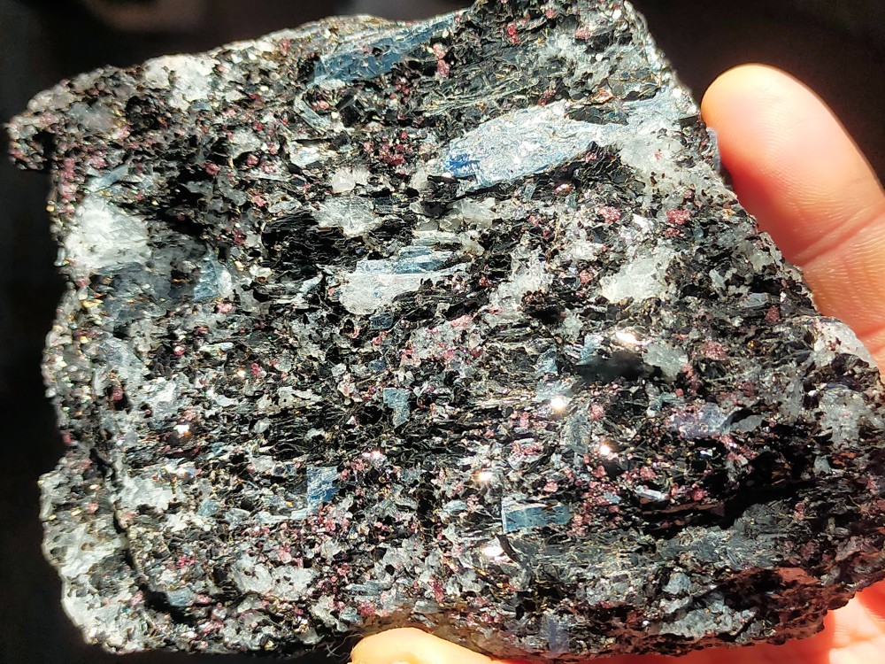 Sodalite verte et bleue avec un peu de chalcopyrite. 185 gr Vallée de koksha. Afghanistan ;Collection perso -