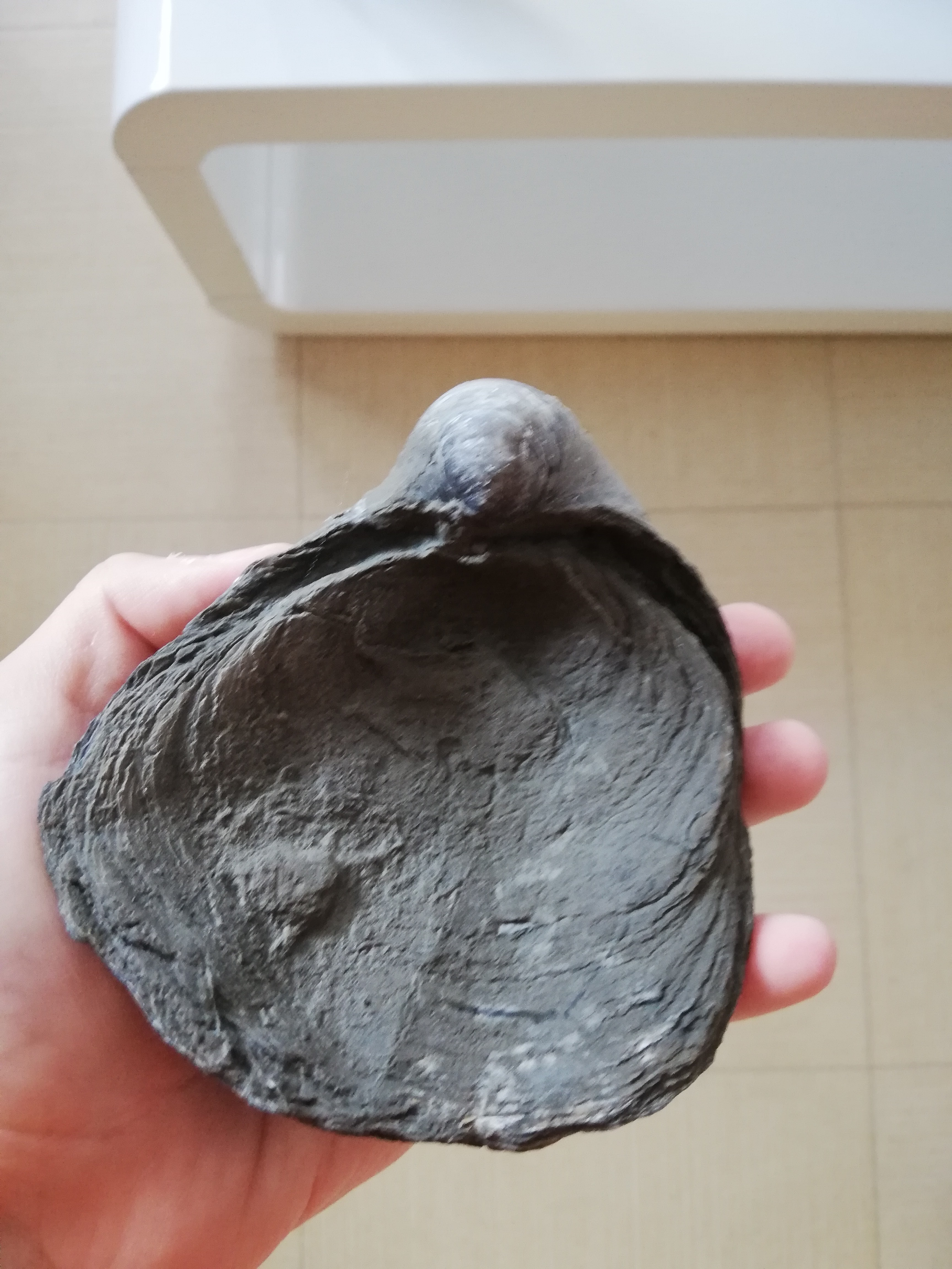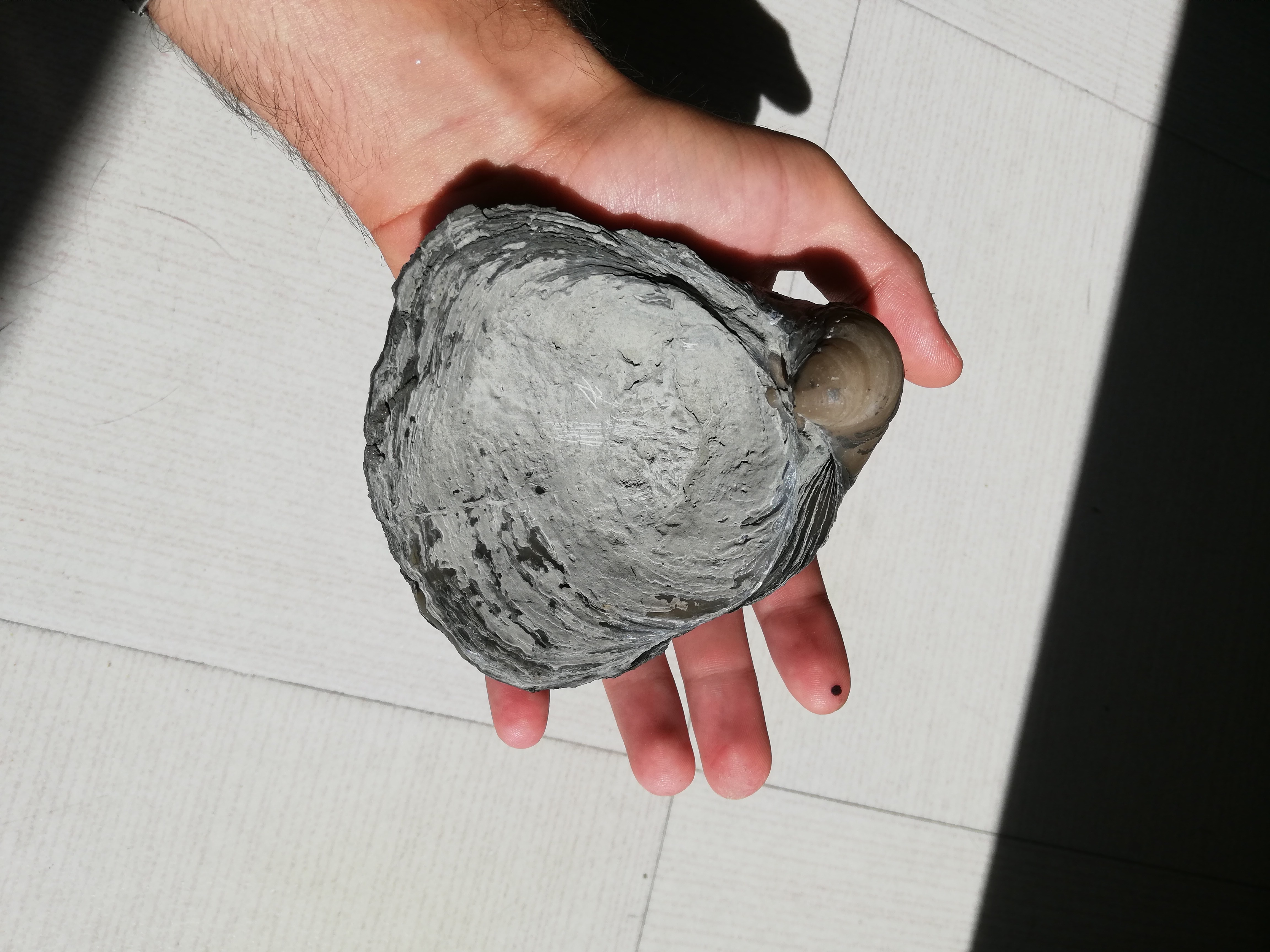 Bonjour à tous ! J'ai trouvé ce magnifique Gryphaea Dilatata de 11cm lors de mon week-end en Normandie sur la falaise des vaches noires à Villers-sur-mer ! J'aimerai enlever cette croûte marron pour voir la belle couleur légèrement bleutée du fossile. Problème : je n'ai aucun outil pour le préparer, est-ce que le laisser tremper pendant quelques temps dans du vinaigre est une bonne idée ? Sinon j'aimerais avoir quelques idées de ce que je pourrais faire, merci beaucoup !