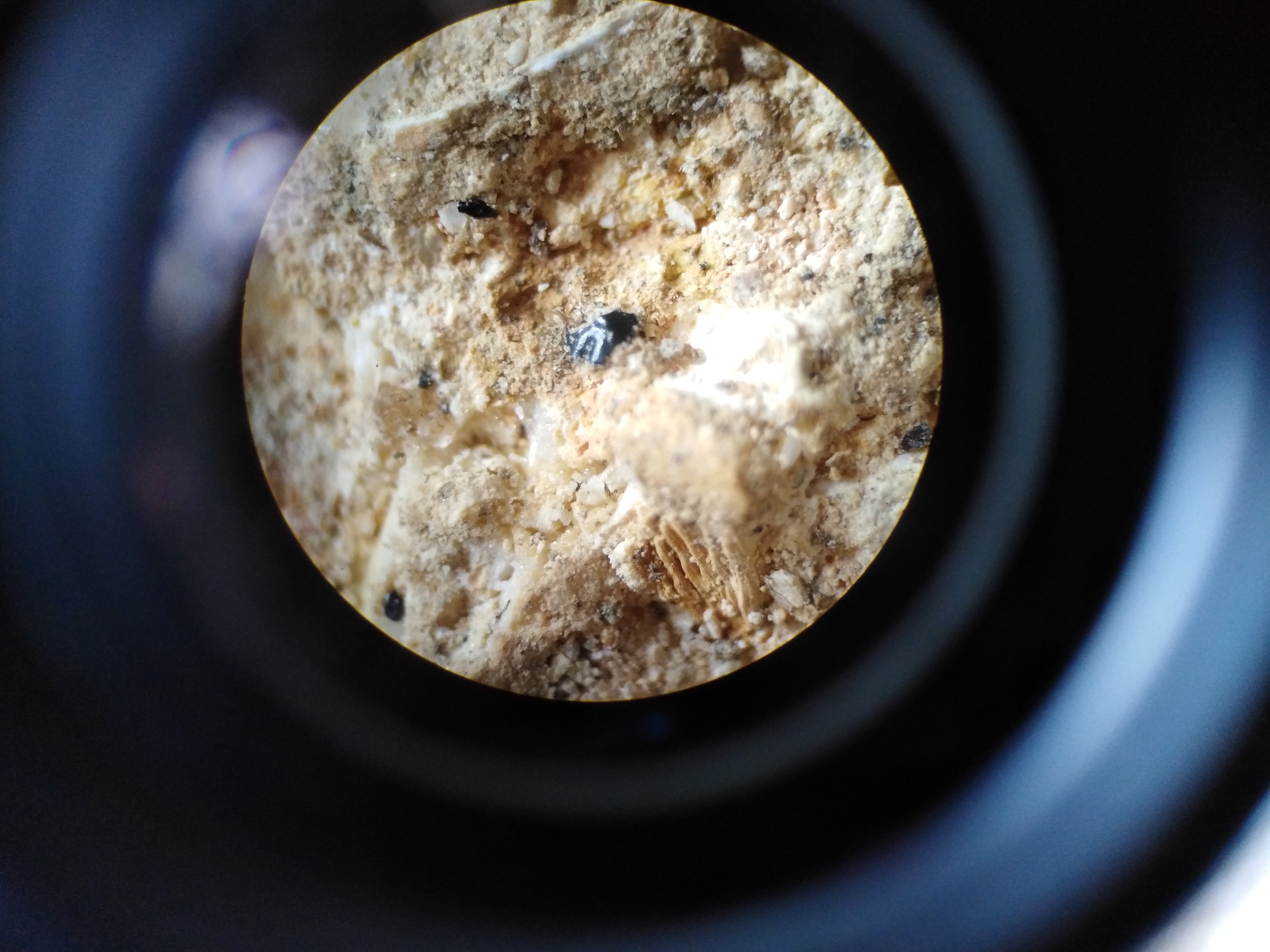 3. Bonjour quelqu'un pourrait t'il identifier ce qu'il me semble être une dent de poissons, la roche vient des faluns et date du miocène, l'objet en question mesure 1mm, voici les photos : Et la juste au dessus d'un bivalve (Anadara turonica ?) Merci