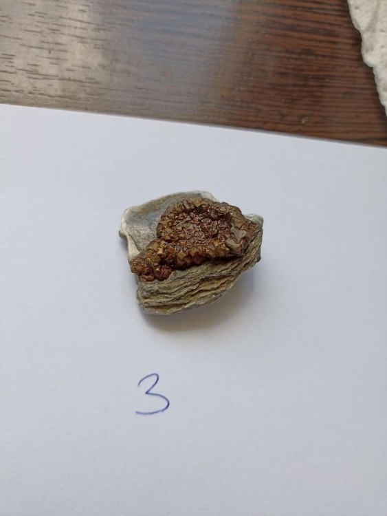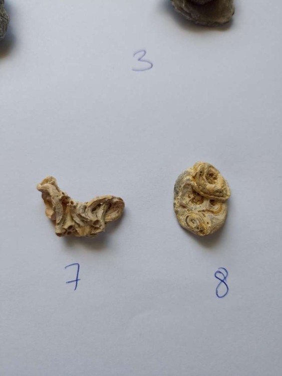 2. Bonjour, Lors de vacances en famille près des falaises des Vaches Noires, nous avons comme tout bon touriste ramasser des fossiles. Sauf qu'on n'est pas du tout connaisseurs 😅 Après m'être renseignée, si je n'ai pas eu de difficulté à en identifier la majorité (ammonites, bivalves à gogo et radioles), il m'en reste certains sur lesquels je sèche. Si c'est possible d'avoir qq renseignements... Merci d'avance Je rajoute qq photos détaillées par la suite. En 1 et en 6 j'hésite entre corail ou spongiaire? En 5 ma fille espère très fort avoir trouvé une dent 😄 En 9 je ne sais même pas dire si c'est un fossile? La 5 vue de 4 faces : La 1 vue de l'autre côté : le 3 :