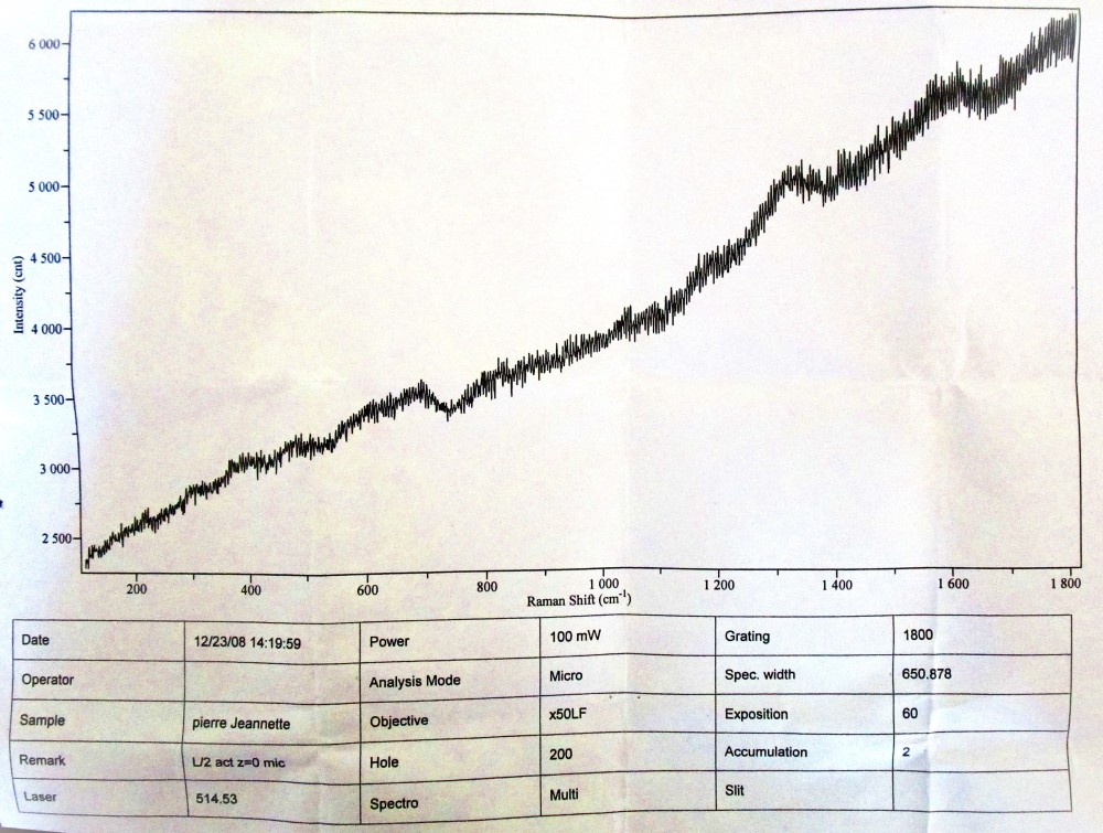 Bonjour à tous A mon tour de présenter une "météorite" En 1997 j'avais acheté une petite "météorite" selon le marchand Pour le prix dérisoire et la curiosité je l'avais acheté sans me poser beaucoup de questions C'est ce qu'on appelle une NWA (acquise au Maroc) Quelques années plus tard parmi mes amis un contact travaille dans une université et utilise des appareils de mesure J'en profite pour lui demander de réaliser des mesures sur mon éventuelle météorite Peut-être en saurais-je plus ? 6 mois plus tard mon amie me rend ma roche avec deux graphiques Pas d'explication, juste les résultats ......... Mon amie et moi sommes bien incapable d'interpréter ces éléments Donc la météorite est retournée dans la vitrine et les graphiques ont du voyagés de tiroirs en tiroirs J'ai justement retrouvé ces documents en rangeant des papiers J'ai forcément pensé à Géoforum, je sais qu'il y a des spécialistes qui saurons certainement décrypter ce qui est pour moi du chinois Que peut on dire de ces graphiques ? J' imagine une recherche de minéraux par analyse spectroscopique A quoi correspondent les abscisses et les ordonnées ? Peut-on conclure à une roche extraterrestre ? Je pense que cela peut intéresser d'autres personnes Merci à tous