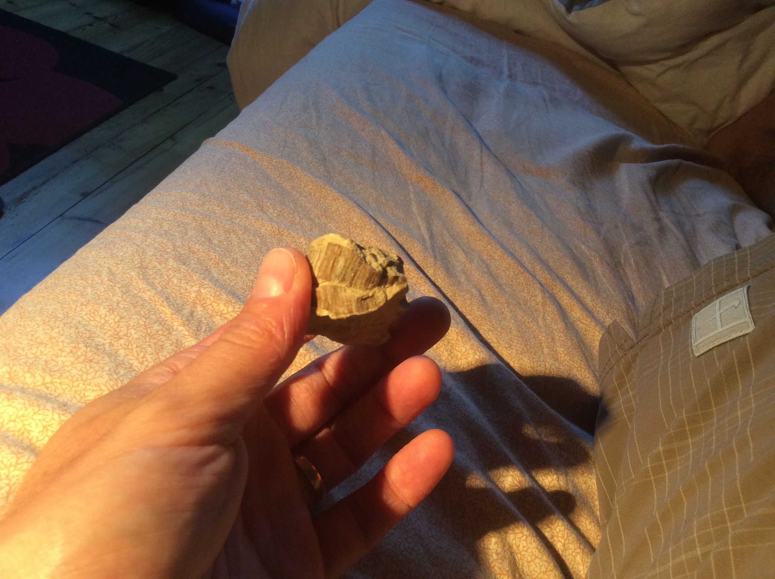 Bonjour, Désolé pour la qualité médiocre des photos, je suis en vadrouille et n’est que ma tablette pour prendre des photos. J’en prendrai des meilleurs de chez moi si necessaire semaine prochaine. donc, j’etais chez un ami il y a quelques temps de cela et les travaux de terrassement de sa maison ayant fini, il comptait se débarrasser du tas “cailloux” généré à cette occasion. Malheureux, que je lui dis ! Il m’a laissé le temps de farfouiller et je suis tombé sur ce qui me semble etre des ossements. La couche sur laquelle la maison est batie est de l’oxfordien. Je vous montre tout d’abord le premier echantillon trouvé pour avis. Je prendrai des photos du reste si vous jugez cette premiere trouvaille intéressante. J’y vois 2 os superposés mais je me trompe peut être. Merci à vous Fabien -
