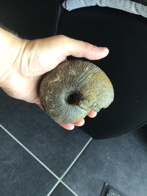 Pour compléter, une autre ammonite trouvée dans la même même strate. probablement Macrocephalites macrocephalus. Mon identification est elle la bonne ? -