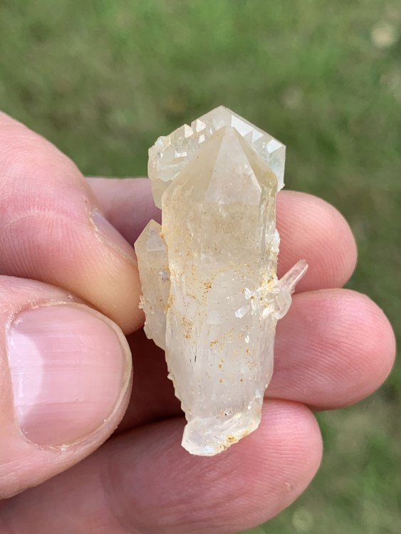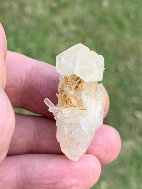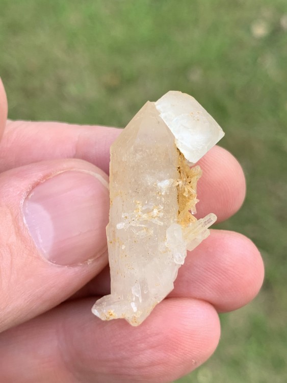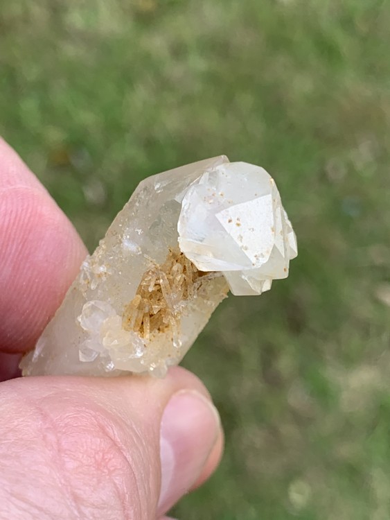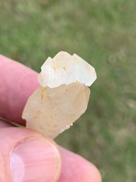 Je ne pense pas pour moi un vrais septre c’est le même Quartz, le prisme principale se poursuit dans la partie supérieure. Même si comme dit plus haut cet axe est désaxé. Mais peut-être que je fais erreure. -