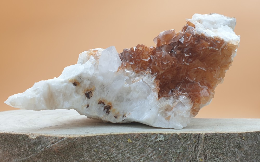 Je pense à des tétraédrites recouvertes d'azurite et malachite (faut voir si les "trucs" recouvert sont triangulaire, j'ai du mal à voir sur les photos), avec de l'aragonite de la carrière d'Usclas du bosc dans l'Hérault. A vérifier je ne suis sûr de rien.