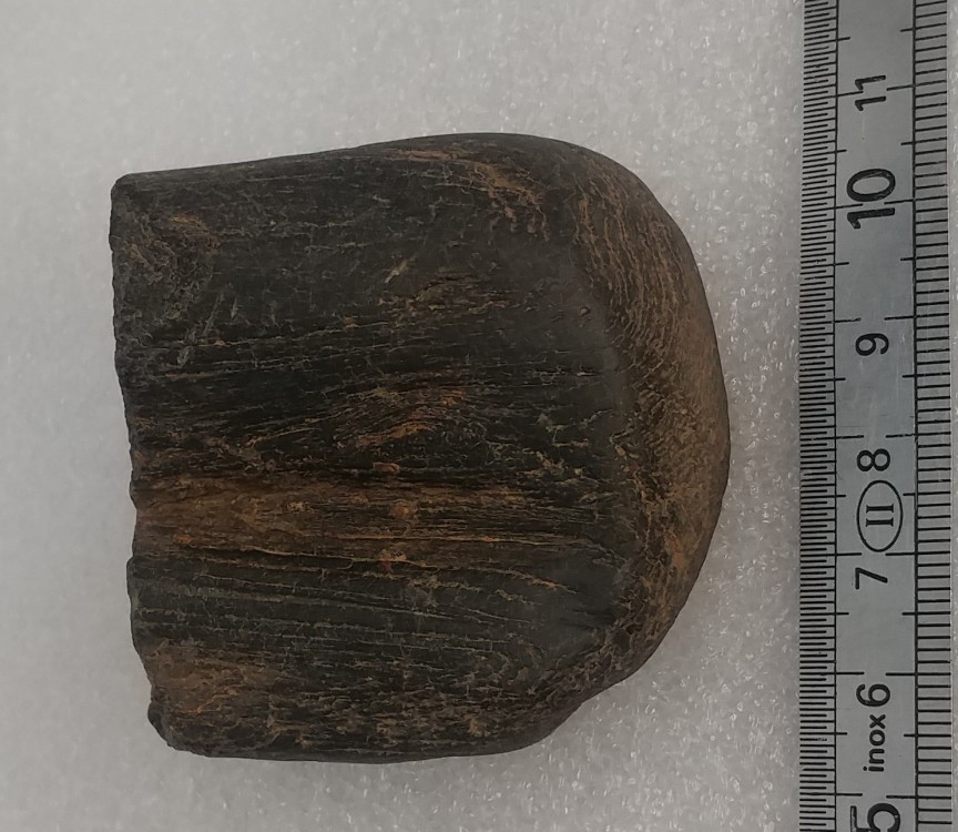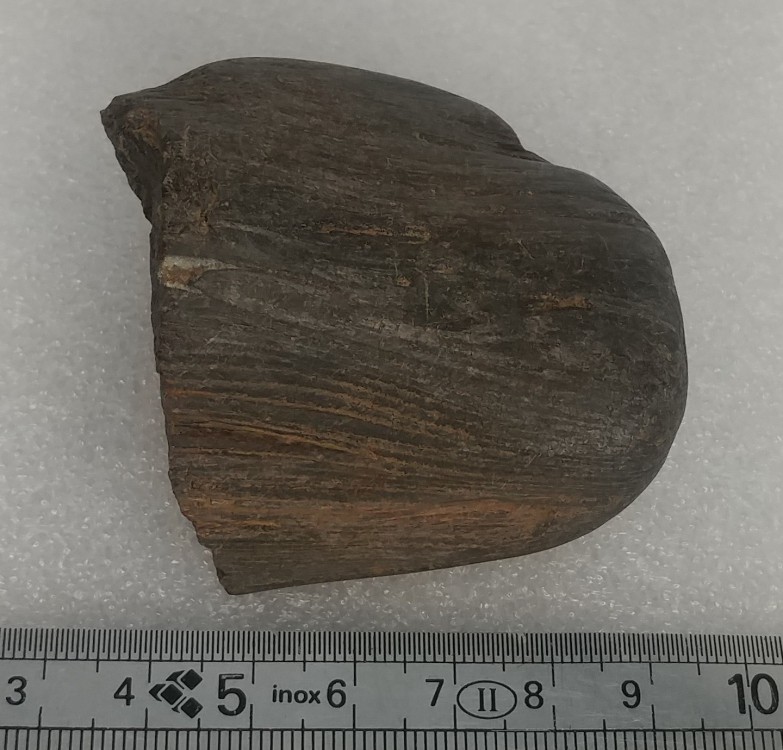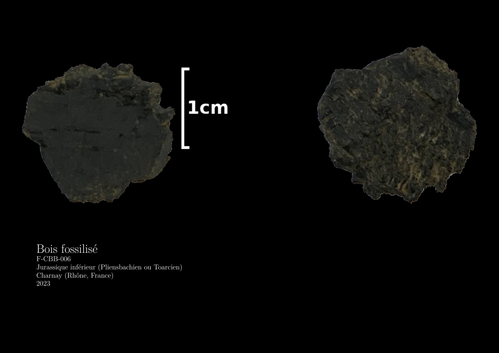 Un membre de ma famille a trouvé ceci dans les environs de Moiré (69). Le grain ressemble fortement à du bois. L’aspect très noir et poli ne me semble pas correspondre à du Jurassique du coin. Étant été trouvé sur un chemin, ce n’est guère étonnant, mais je me demandais si quelqu’un saurait m’en dire plus. Recto Verso Dessus On voit les cernes du bois Dessous Alors que le reste présente un aspect poli de galet, il semble y avoir eu une cassure plus récente ici Merci d’avance pour vos réponses !