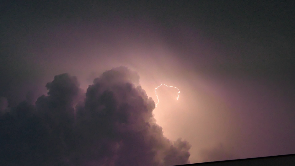 Quelques photos d’éclairs. L’orage a duré plus d’une heure et demi, mais les éclairs étaient très peu à aller vers le sol, la plupart évoluant au sein du nuage. -