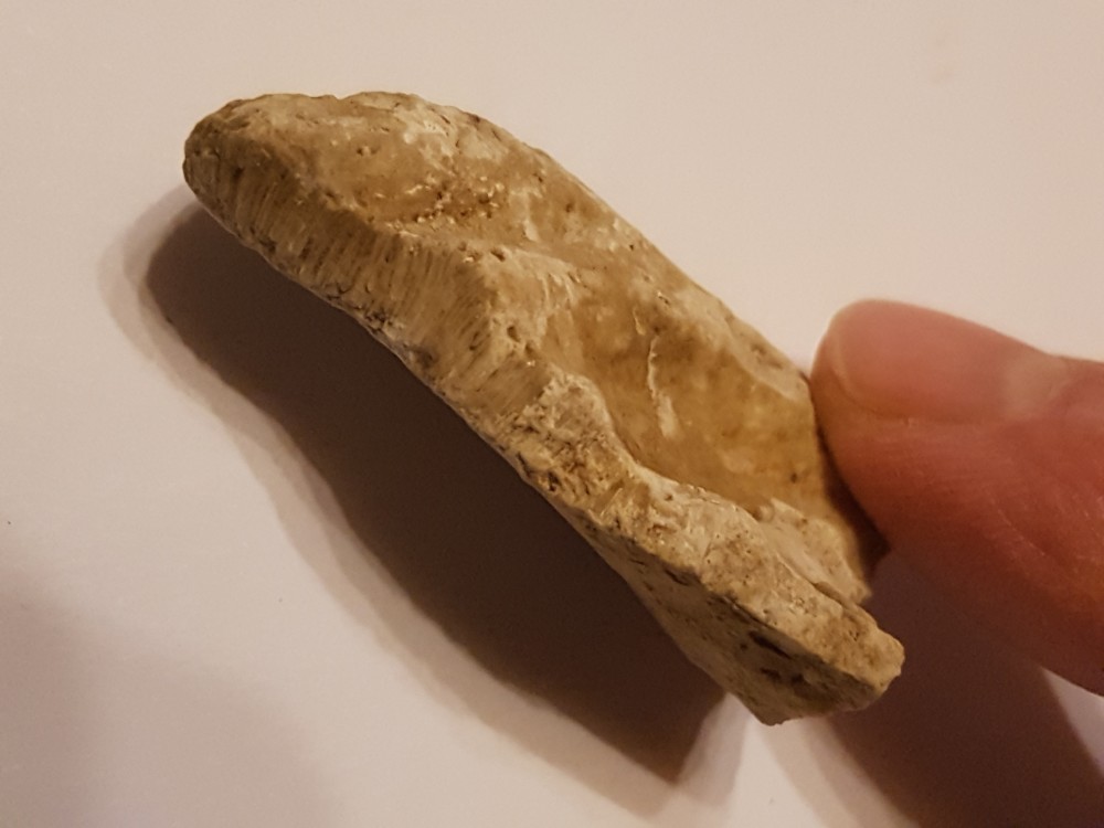Spécimens trouvés dans le calcaire, carrière maintenant remblayée qui abondé de fossiles divers marins (oursins, coraux, dents, coquillages divers et empreintes de poissons Cela me fait penser à ce que j'ai ramassé la semaine passer , recto et verso en silex -
