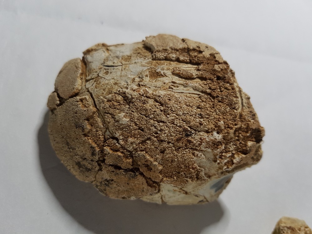 Voici ce qui semble être des morceaux de nautile du même secteur de découverte. La forme bombée des deux pièces rappelle celle du nautile...quatre images La surface est de même aspect granuleux pour les quatre premières images. Les cinquième et sixième images représentent des silex recouverts de plaques granuleuses rappelant l'aspect de surface du nautile complet au début de ce post les deux petits morceaux sont légèrement concaves rappelant la forme externe. la septième image est d'un aspect différent et étrange...