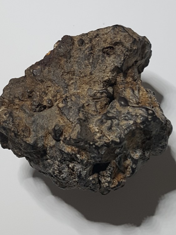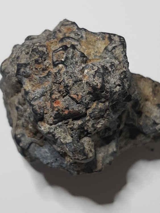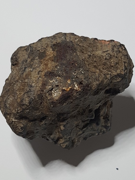 Bonjour Voici un petit bloc de 171 gr aspect général gris à noir lisse , dimensions approximatives 3.7x4.4 x4.8 cm. pas de réaction au détecteur de métaux, dévie fortement la boussole, est attiré par fort aimant. Traces brillantes en surface par endroit sur la première image. Traces rougeâtres image 2, traces de fusion...Scorie?