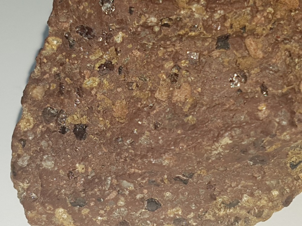 Bonjour Petite pierre de forme triangulaire rosâtre avec incrustation de cristaux noir brillant et blanchâtre . Rappel le granit ?