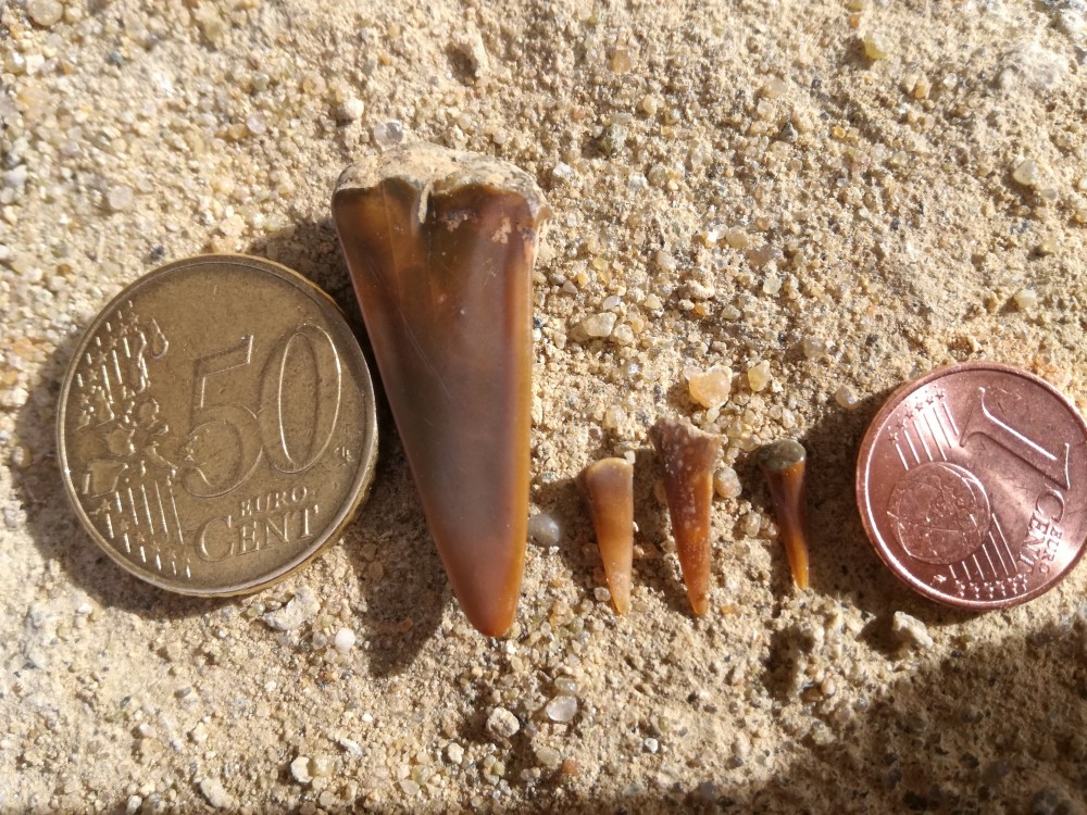 Nous avons pléthore de dents entre 5 et 20mm. Une fois une amie que nous avions emmené pour la première fois a trouvé "un trésor" à nos yeux.