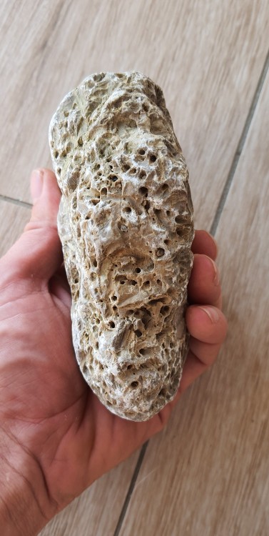 Bonjour. Un fossile ramené du jura cet ete , je pensait l'avoir perdu mais je l'ai finalement retouvé dans mon bordel . cette pierre avait attirer mon attention lors d'une partie de peche dans la bienne , elle se trouvait dans une graviere je pense qu'i sagit de corail fossilisé ou moins probable une eponge , ont voit ce que je pense etre une zone de fixation a l'arriere du fossile . Qu'en pensez vous ? Sebastien