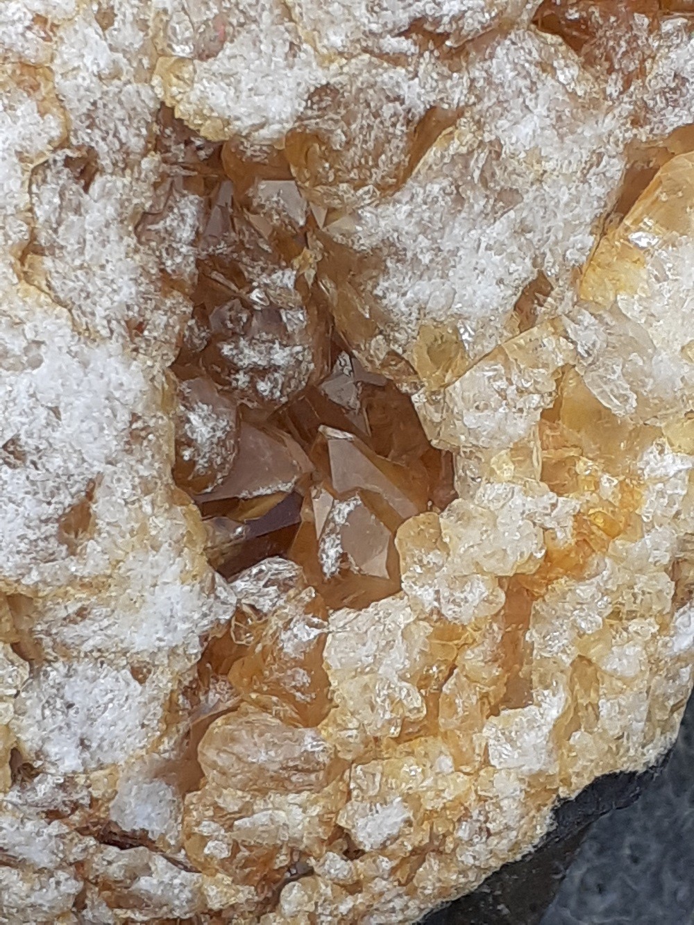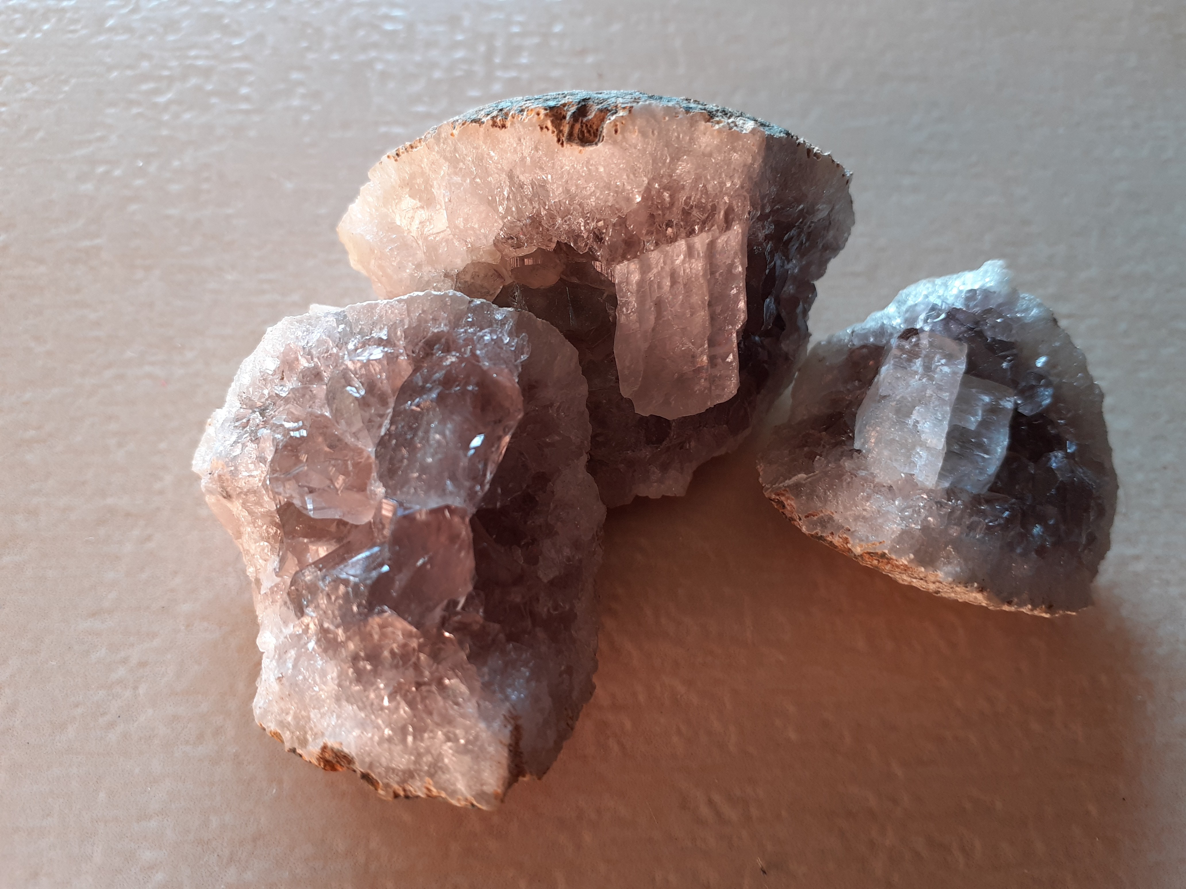 5. Bonjour, je suis nouveau sur le forum J'habite à MACON (Saône et Loire) Une ami m'a donné des minéraux en provenance de Madagascar, en voici quelqu'un Pour les identifications, j'en suis pas sur, je préfère l'avis de spécialistes Améthyste avec calcite probable au centreÇa c'est le truc bizarre, surtout celui du bas qui fait vraiment orpiment, mais pas connu pour moi à madagascar La ce serait biotite et calciteLes deux au-dessus évoquent du quartz plus ou moins coloré, mais ça devrait rayer le verre.