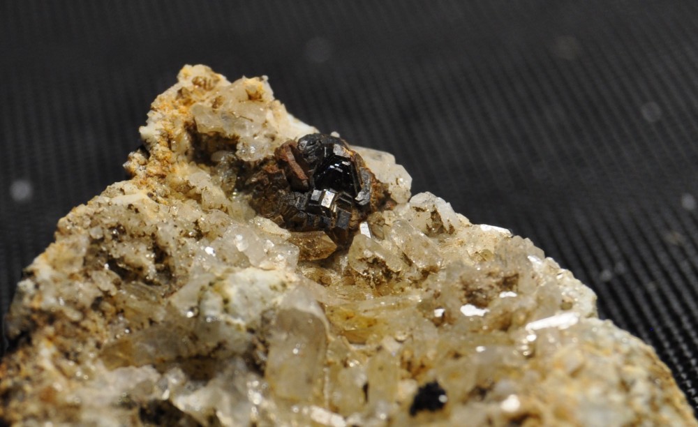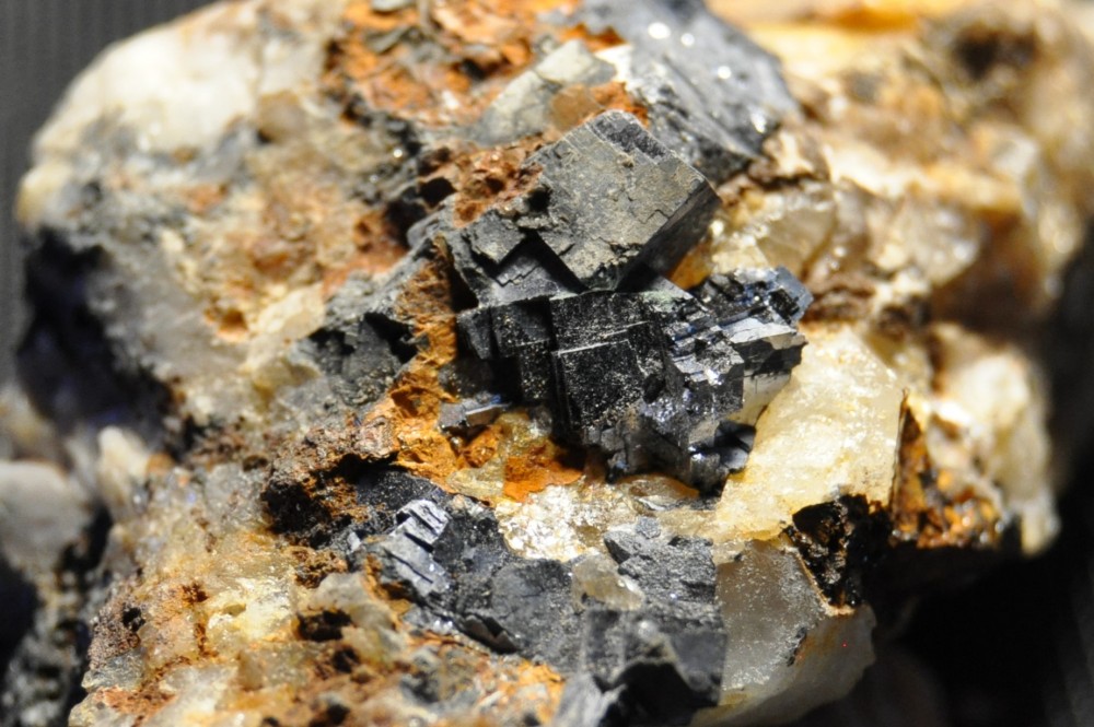 Bonjour ! Je cherche à déterminer ceci : Contexte géomorphologique : roches moutonnée (retrait récent du glacier) Contexte géologique : Grès Nature et type Gangue / Encaissement : Prélèvement issue d'un filon encaissé dans une roche ferreuse et friable Minéraux principaux : ? (Cristaux noir) Minéraux secondaires : Adulaire ? (Blanc) Etat prélèvement / habitus des minéraux : Inclusion noir massive (dureté >5 ? / brillant métallique léger reflet bleu / Densité ? Pas léger, pas lourd / Cassure sub-conchoïdale / Face des cristaux identifiables concaves ou bombés / Clivage non net) mélangée à minéral blanc (adulaire?). Trace source de fer (oxydation). Merci ! Olivier
