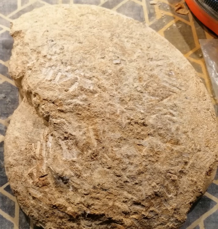 25. Bonjour L'été dernier j'ai récolté un gros oppélidé (20 cm) du callovien moyen du doubs (zone a coronatum, sous zone à obductom/baylei ou grossouvrei/leuthardi, comme tout était mélangé je connais pas son origine exacte) Je pense à un oxycerites epais mais je suis pas sur Avis aux amateurs comme aux professionels