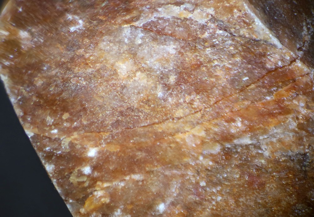 Je joins une autre vidéo pour tourner un peu autour de ce caillou sous meilleure lumière ... On y voit une sorte de plissage un peu sinuosant ou avec "un pendage" selon la face sombre (la base) observée ... Cela fait penser à du métamorphique plutôt ... Quant aux cristaux rosâtres, je n'arrive pas à trancher entre quartz ou feldspath ... Si d'aucun a une idée, je suis preneur et peux remettre le couvert (autres vues) si nécessaire ... N'hésitez pas à me dire si j'écris des couneries ... 😉 -