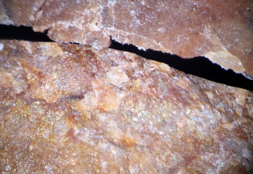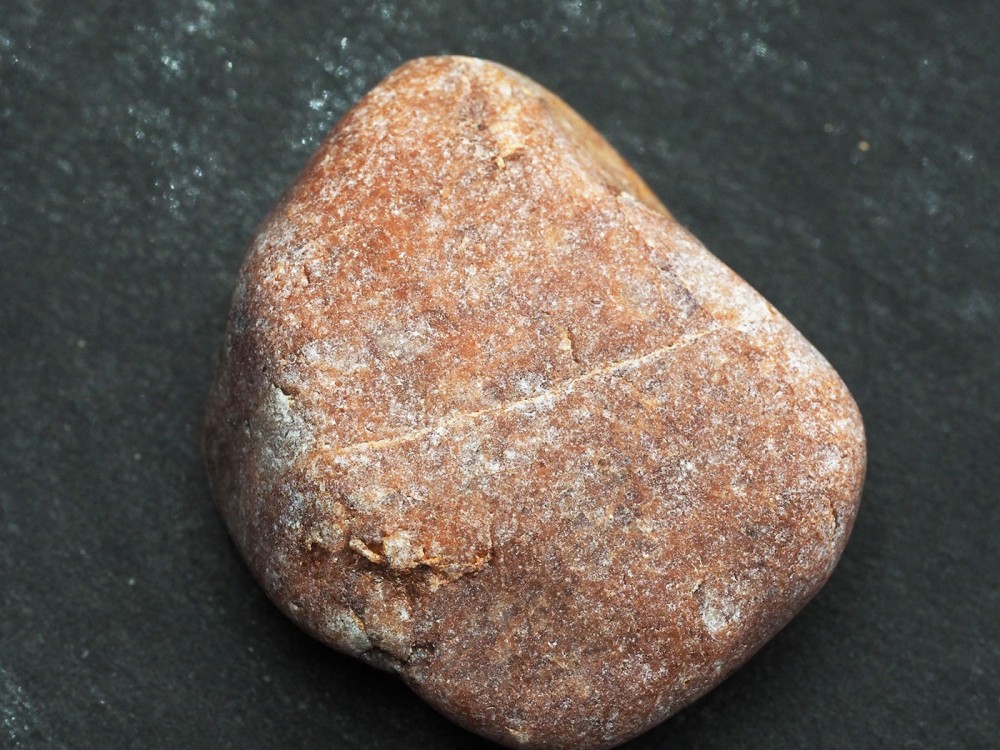 4 - Caillou rose à grains très fins ou une seule espèce de minéral légèrement non homogène ? Comme je n'arrivais pas à me décider je l'ai cassé ... et l'intérieur ressemble à l'extérieur ... Je n'arrive toujours pas à savoir s'il y a une seule espèce minérale ici ou si il s'agit d'un caillou accueillant un mélange très fin de minéraux ... deux vues entières de chacune des deux faces et 2 vues de la cassure ...