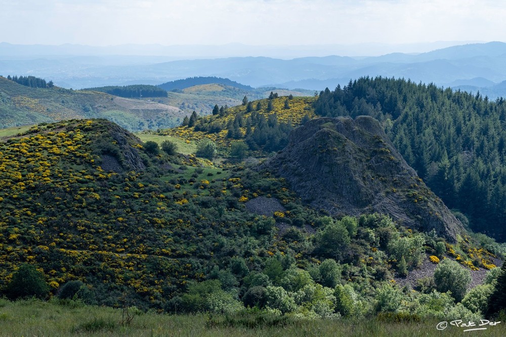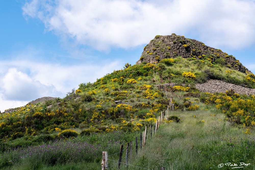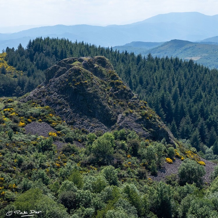 Bonjour à tous, J'ai récemment remis les pieds en Ardèche, et j'ai eu l'occasion d'avoir en main un bouquin proposant des idées de balades centrées sur les géosites des Monts d'Ardèche. Un site internet existe qui est plus complet (plus de géosites) mais m'a semblé bien moins détaillé. N'étant présent que pour quelques petits jours, j'ai ciblé quelques formations volcaniques périphériques au volcanisme du Coiron, pour associer balade et paysages, ainsi qu'un site aménagé de traces de dinosaures. Col de Sarrasset : Au retour de cette petite balade, j'ai eu l'occasion d'entendre pour la 1ère fois depuis 15 années au moins, une caille des blés chanter dans la prairie sous le col ... Joie et tristesse mêlées ...