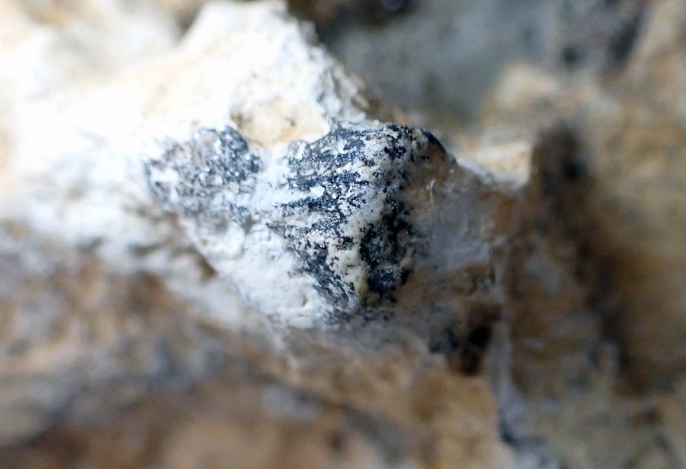 Baryte de La Union, Espagne : Voici le Baryum, sous forme de sulfate, si je lis bien ! Il est ici de couleur grisâtre, translucide et sous forme tabulaire ou lamellaire, je ne sais pas ce qui s'applique le mieux ici à ce cristal : l'épaisseur du grand "feuillet" est de 2,1 mm pour une longueur de 22,1 mm. Auriez-vous une idée de l'identité des autres cristaux ressemblant à un amas lâche de "scories" blanchâtres et translucides à transparentes ? Ainsi que ces petits agrégats de couleur rouille/ocre ? Merci par avance !! -
