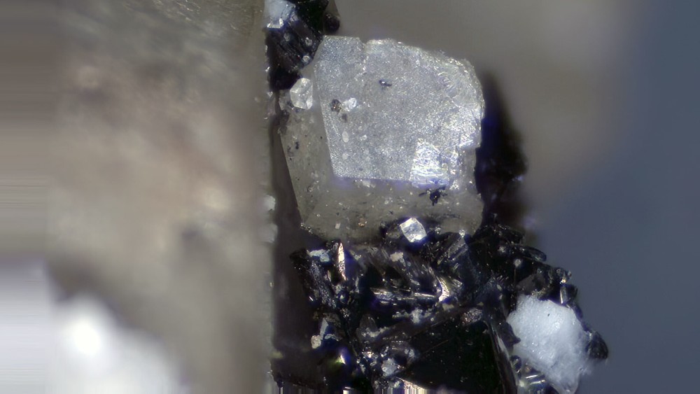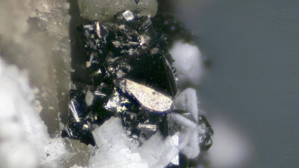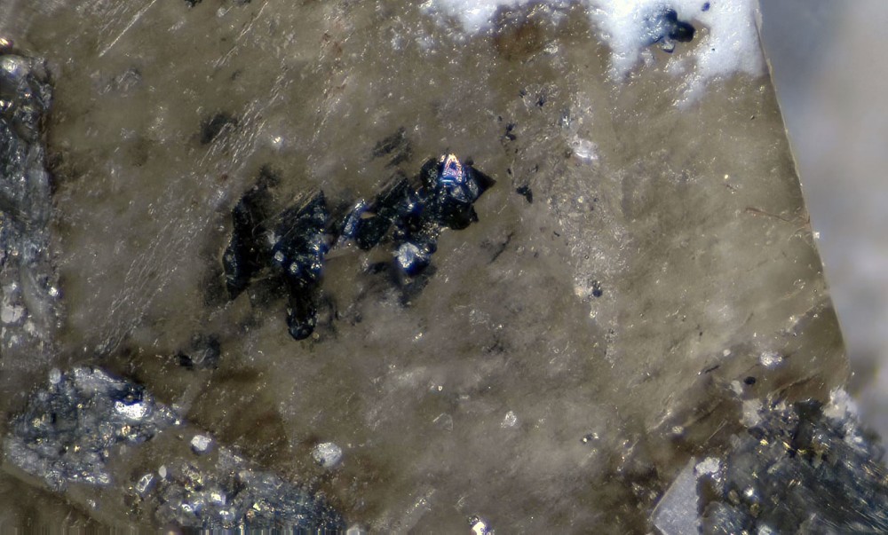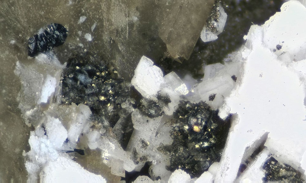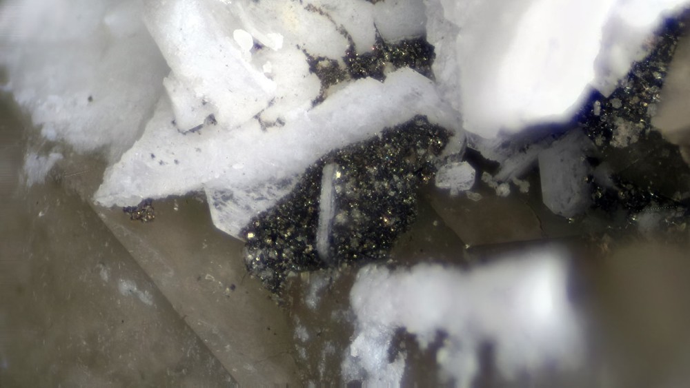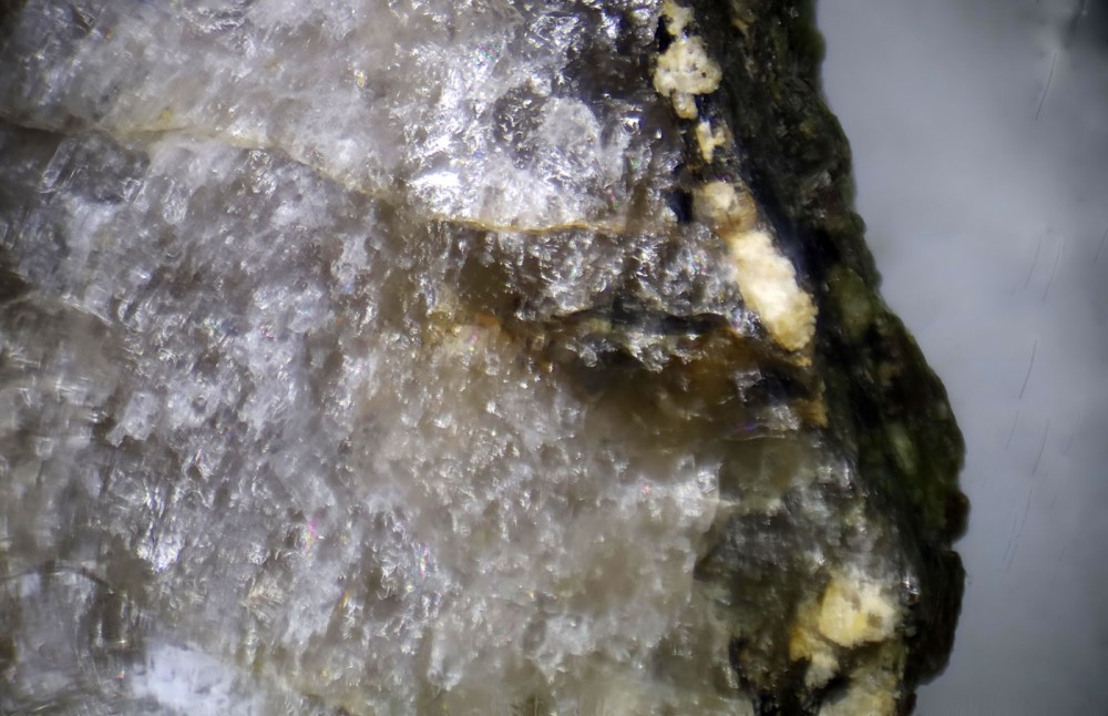 Je ne sais pas s'il y a un moyen de progresser simplement ... Je joins cependant deux vues du même morceau issu de l'éclatement ... Sur la 1ère image ci-dessous, il y a également un truc verdâtre foncé qui m'intrigue ... Je ne vois pas de muscovite à l'observation avec une loupe ... mais cela ne veut rien dire, évidemment ... 😁 -