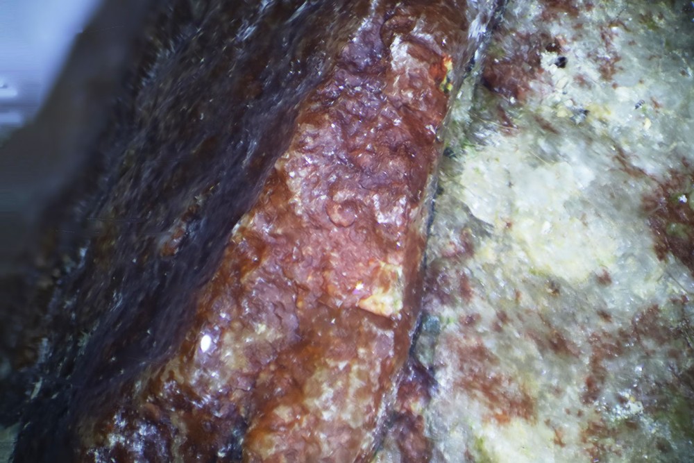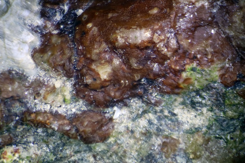 Bonsoir, Bon j'ai pris le temps de passer sous bino cette sidérante sidérite et en voici quelques clichés ... La qualité est moins bonne qu'avec le laowa 2.5-5x mais ça grossit plus ... Sur la 3ème et 6 ème image peut-être ce qui brille "d'or" serait de la pyrite ? Encore merci à vous ! -