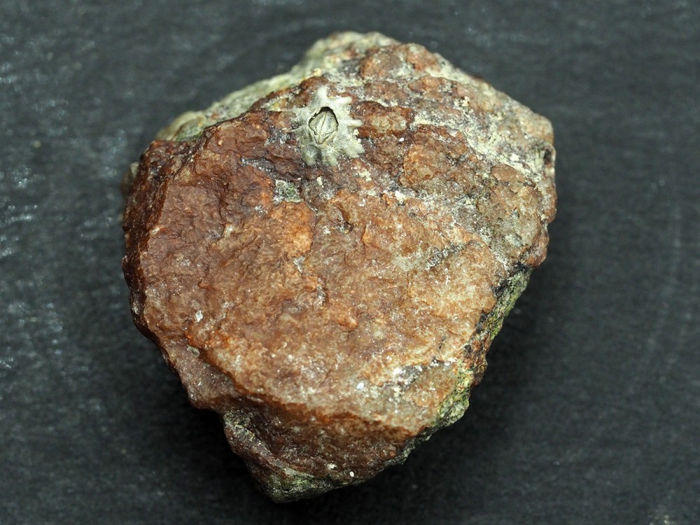 1 - Le "carrelage" Toujours dans la zone de balancement de la marée, sur la plage entre rocher du lion et rocher de la rougeole (St Nazaire), j'ai ramassé ce caillou qui me laisse bien perplexe ... J'y vois comme une allure de carrelage avec un côté coloré, limite vernissé (poli plus justement), et un côté blanc sale, "la base" du carrelage ... Je n'ai pas fait de test, notamment acide pour nettoyer les taches vertes (a priori organiques - algues ? -) ... dîtes moi si c'est utile ici (calcaire éventuel, etc.). -