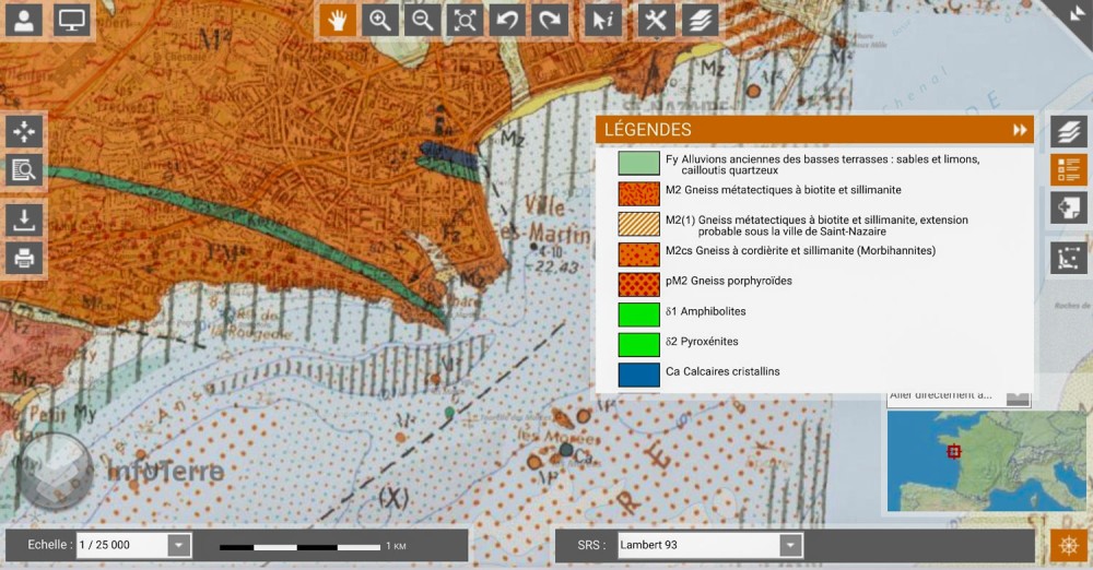 Oui effectivement !! J'avais la bonne lecture des symboles mais pas vu l'apparente contradiction ... 😉 Ce qui m'a fait douter, ce sont plus les aplats/couleurs et motifs : je vois sur la carte un orange moucheté de rouge ... 😉 Ok ! Très clair ! J'ai refait un zoom sur la partie "grenat potentiel", est-ce bien cela ? et j'ai une question connexe et double d'ailleurs : le truc blanc neige pure et légèrement gris : c'est du quartz ? il héberge un cristal noir : est-il possible de connaître son identité ? Merci par avance !! -
