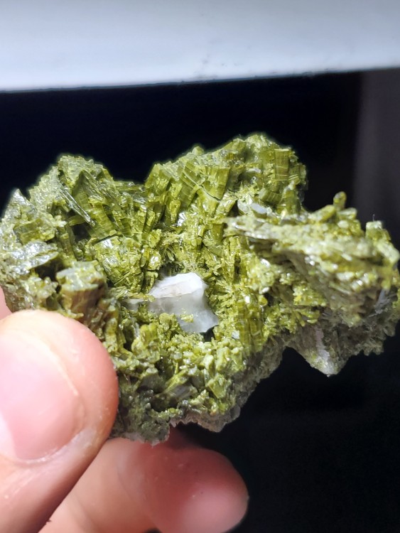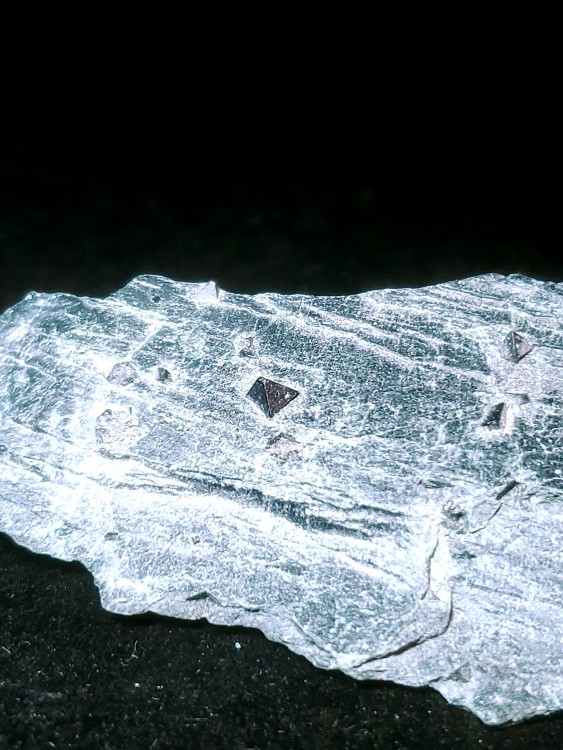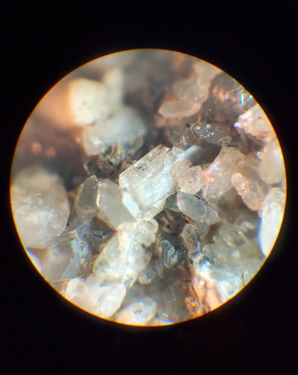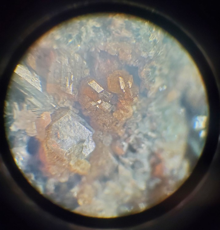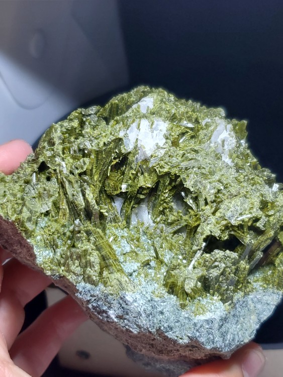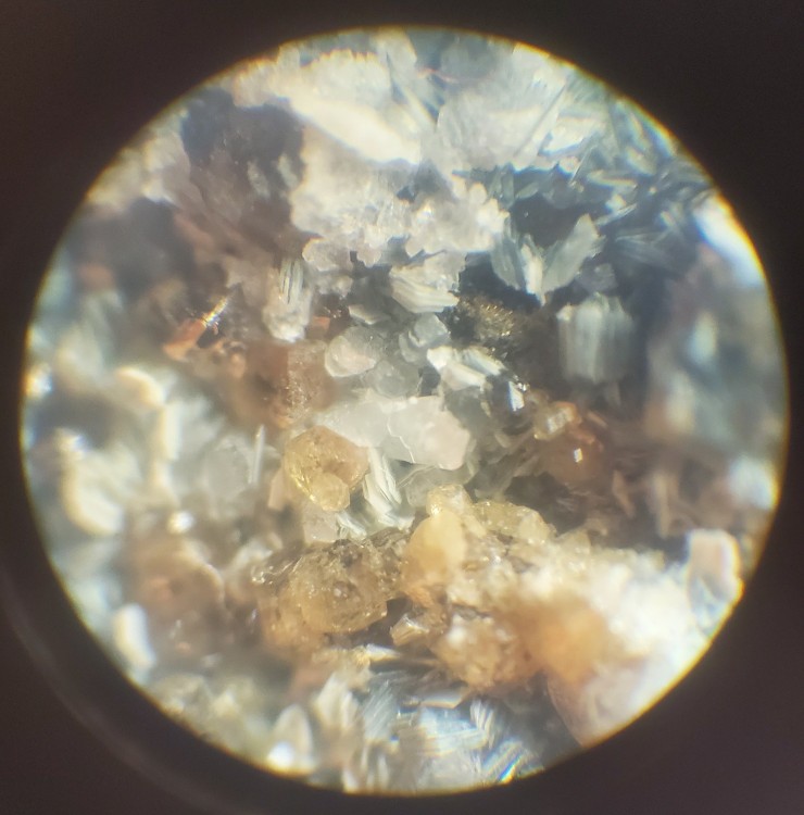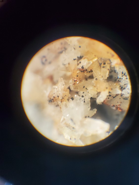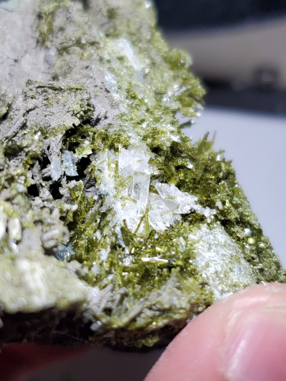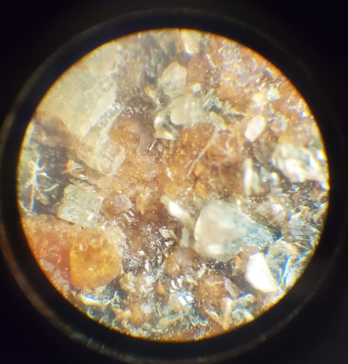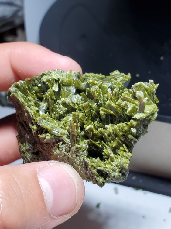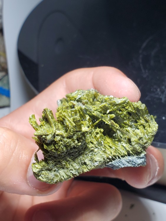 Secteur Pic de Belledonne : Les epidotes étaient pour la plupart prisonnières dans de la calcite, que j ai dissoute. Il y a également des associations avec pyrite et quartz 20250905_224037.mp4