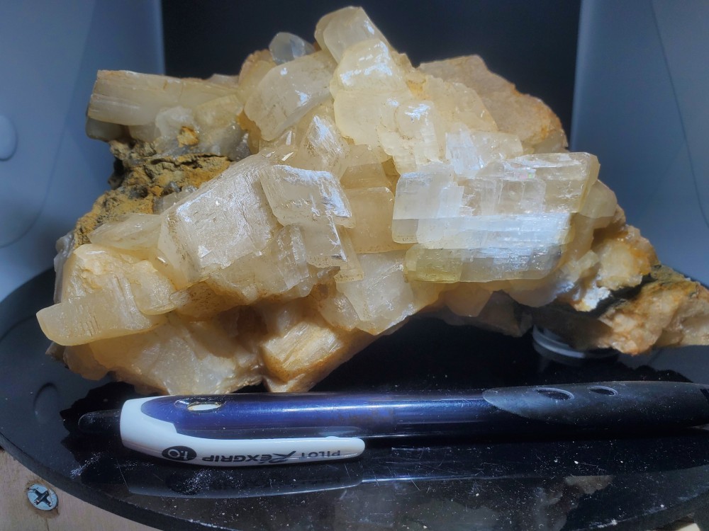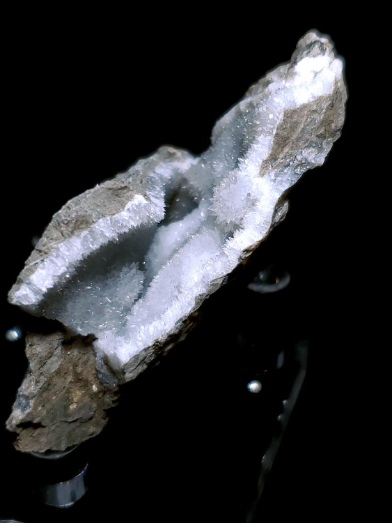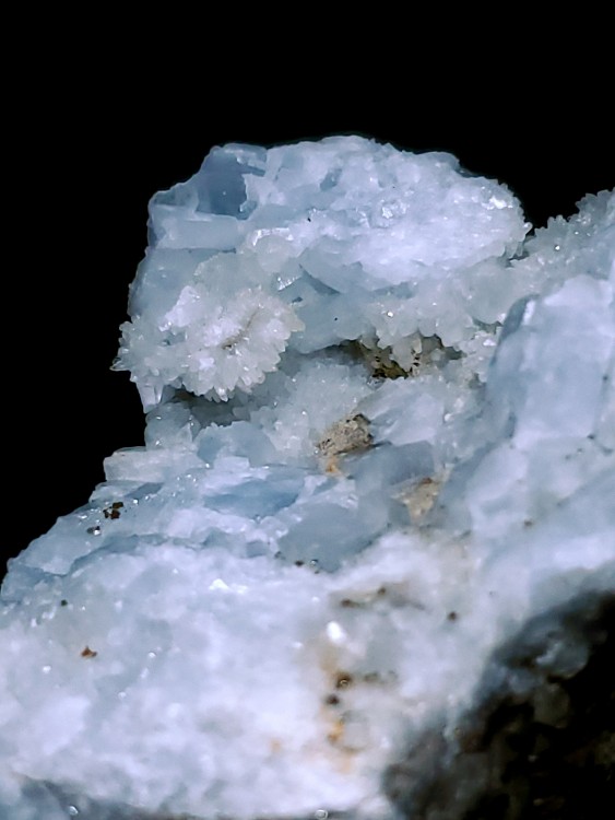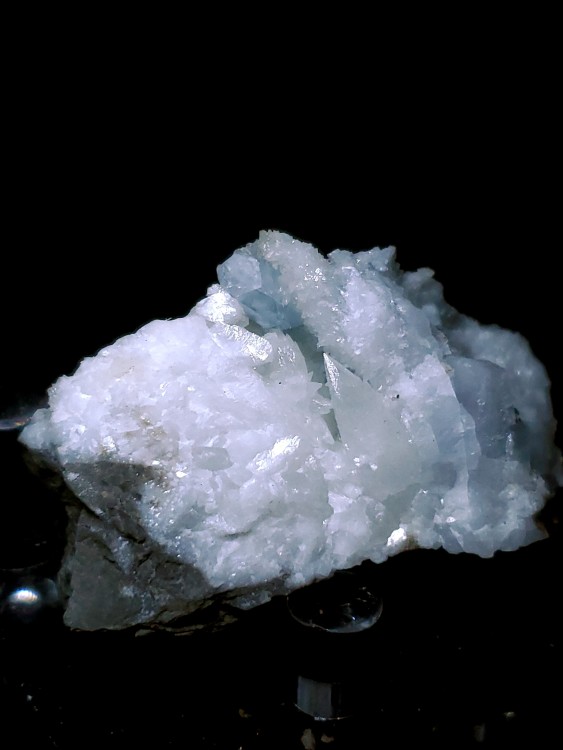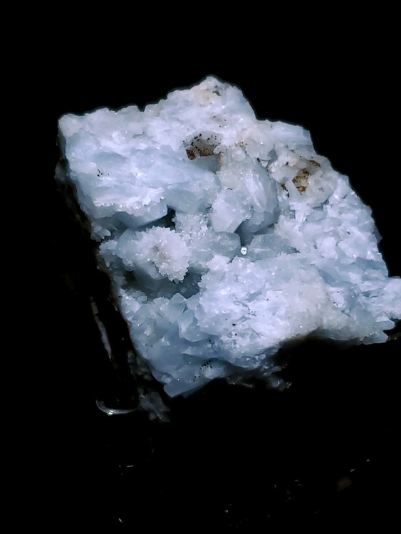 Je ne sais pas si ça t intéresse encore, je pose quelques photos du col du chat en espérant que la qualité limite de mon téléphone te convienne ici, calcite et célestine cristaux de pyrite sur celestine avec ci-dessous la pièce vu global Habitus rare ici : veine pur de celestine avec cristaux de calcite, 90% du temps c est plutot la célestine qui pousse sur la calcite ou alors sur la roche elle même -