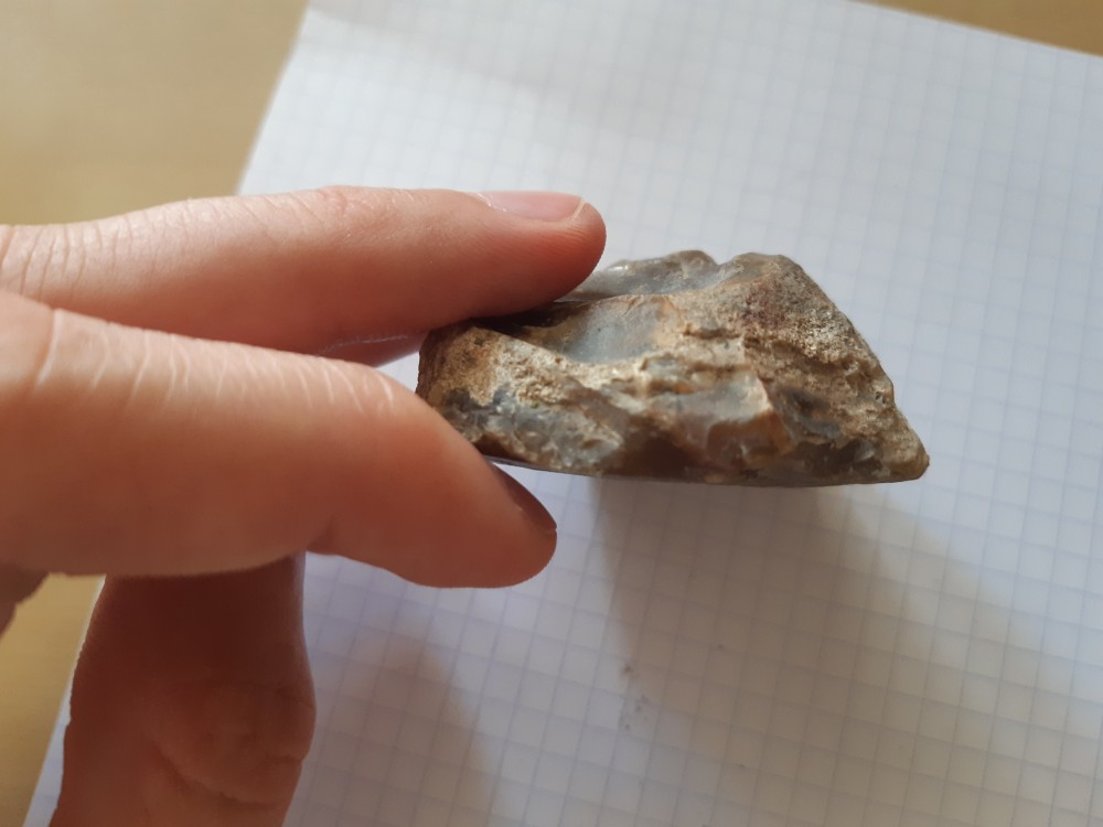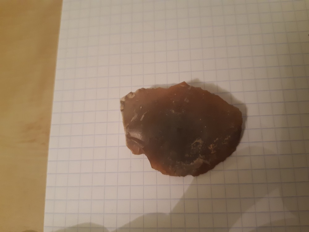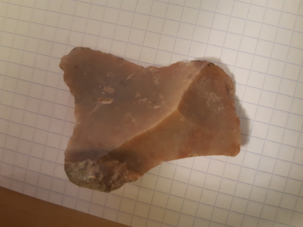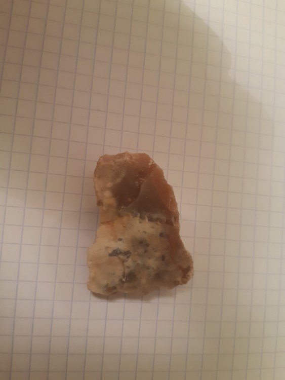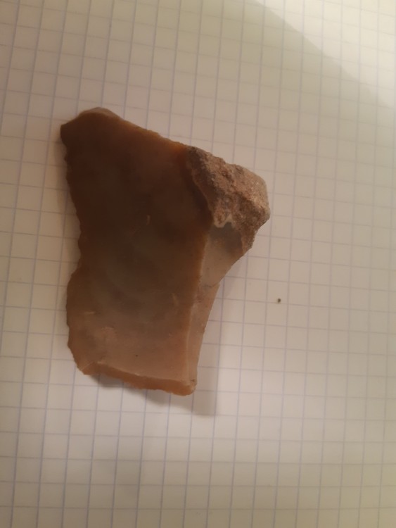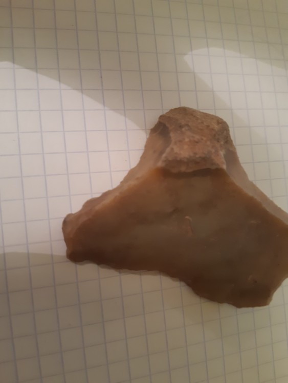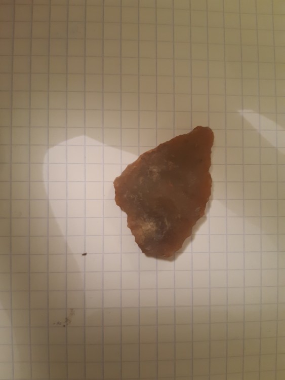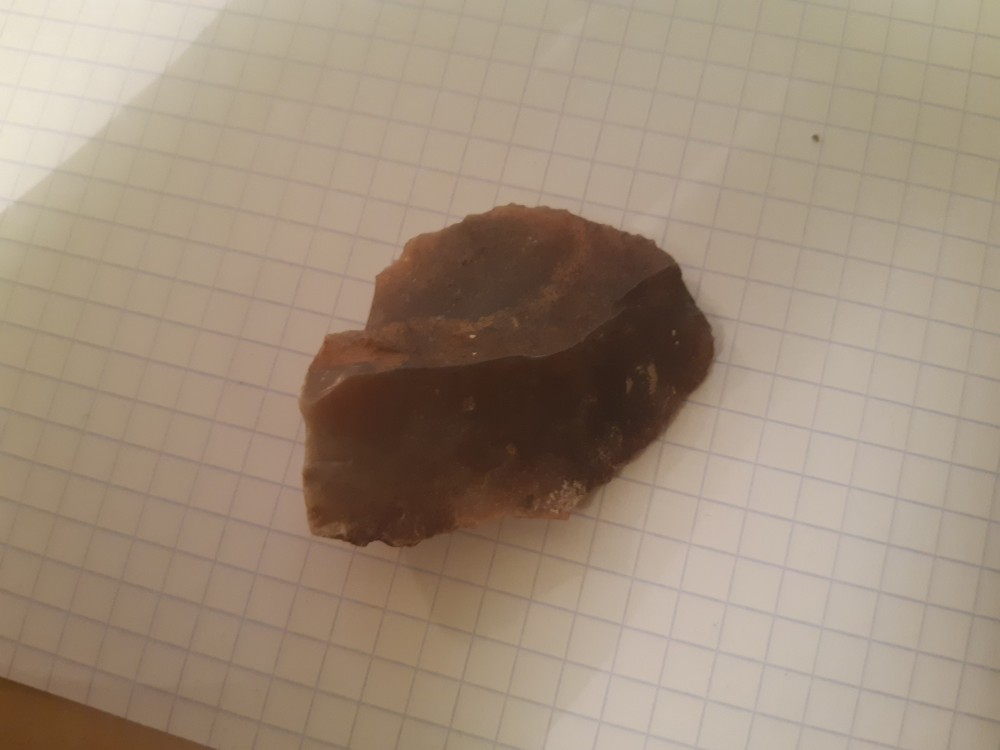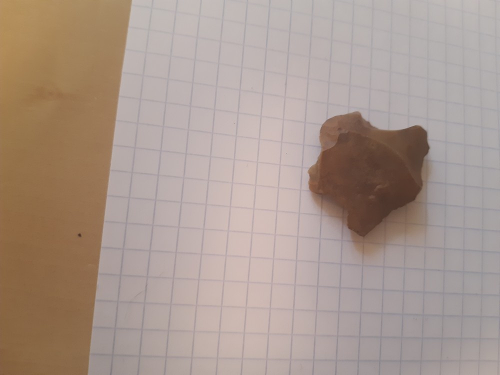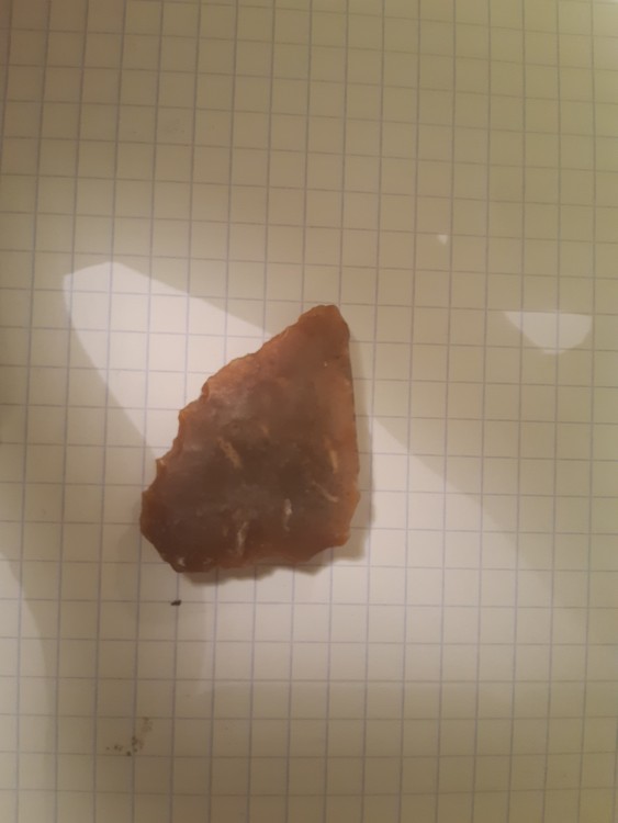 n 3: (eclat retouché ?) n 3: (avec un bulbe bien marqué au niveau de la partie lisse) n 4:(il m a au début fait penser a une armature trapézoïdale mezo) -