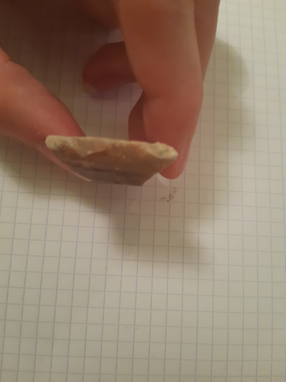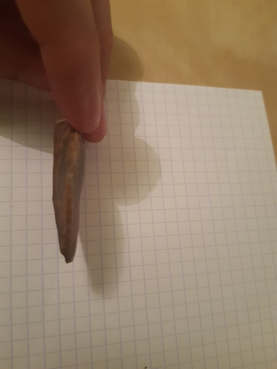 Ok merci de ton avis, du coup pour cette forme allongée et aplatie (qui donne une forme de dent au coquillage) s explique par l ecrasements du fossile? Le fossile a été prélevé en surface mais le lieu exact il ne s en souvient malheureusement plus. -