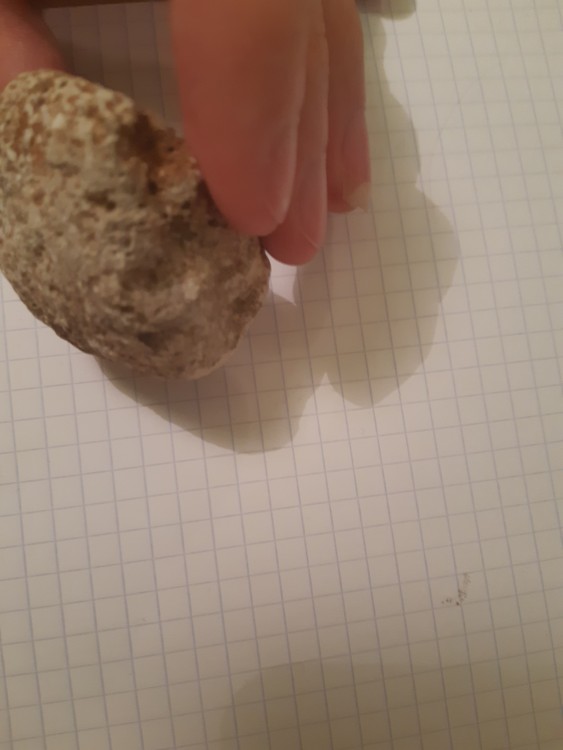 Bonjour, il y a quelques semaines j'ai trouvé dans un bac de plantes avec des graviers et galets sur une aire d autoroute ce qui me semble être un coprolithe de requin (pour info l aire d autoroute en question était dans le nord de la Pologne et les carreaux sur la photo font 5mm.)