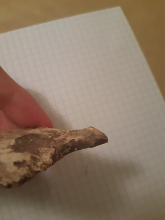 Puis enfin les deux derniers, pour le n 8 il s agit d un percoir qui a été trouvé dans la forêt située juste au dessus de la grotte sombre (toujours à Ojcow) qui est une grotte connue pour avoir livré beaucoup de traces (silex taillés restes de feux et ossements d homme de néandertal).Et pour le n 9 c est une côte que j ai trouvée a l'epoque dans la grotte même (a même le sol au cours de la visite) et après demande auprès d un archeo qui travaillait la bas il m a autorisé a la garder sans même vraiment la regarder il s agit je pense (celon mes recherches de peut-être une côte d auroch?) et je voulais savoir comment est il possible de savoir si cette côte a pu éventuellement être (en fonction des traces de polissage) un palisson pour lisser des peau ? n 8: -