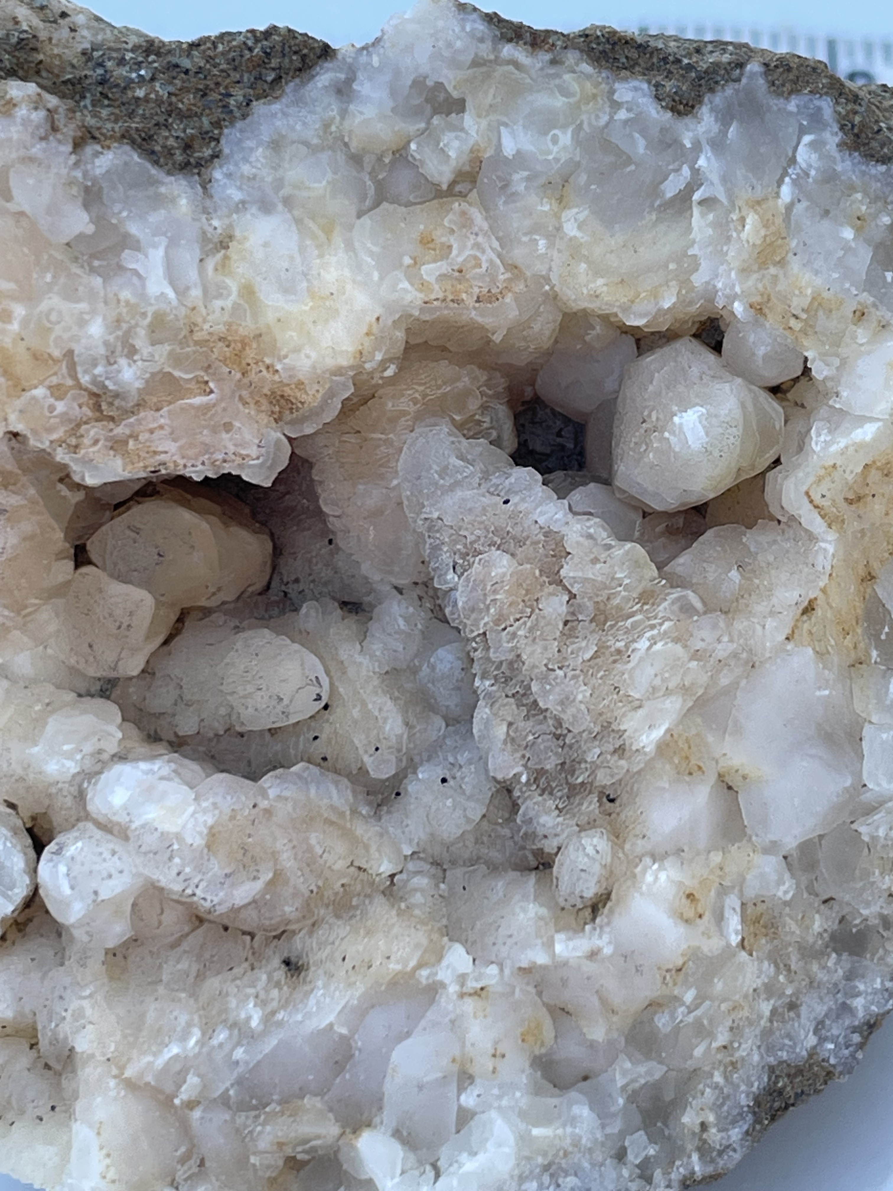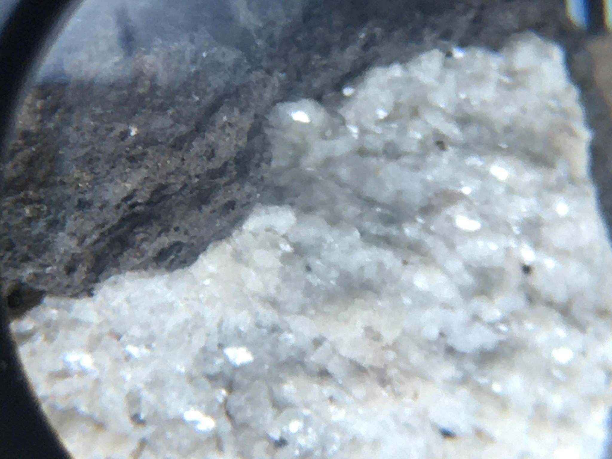 merci pour vos réponses, oui le blanc raye a peine le verre, mais la partie roche volcanique ne le raye pas. je teste a l'acide ce soir pour voir. et promis j'investit dans une balance de précision pour pouvoir faire une densité sur les prochains minéraux. -