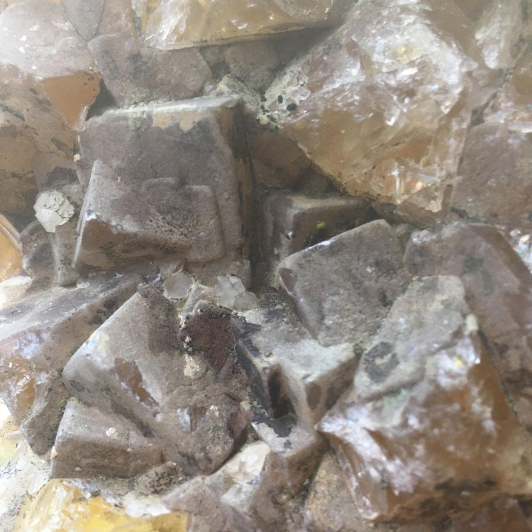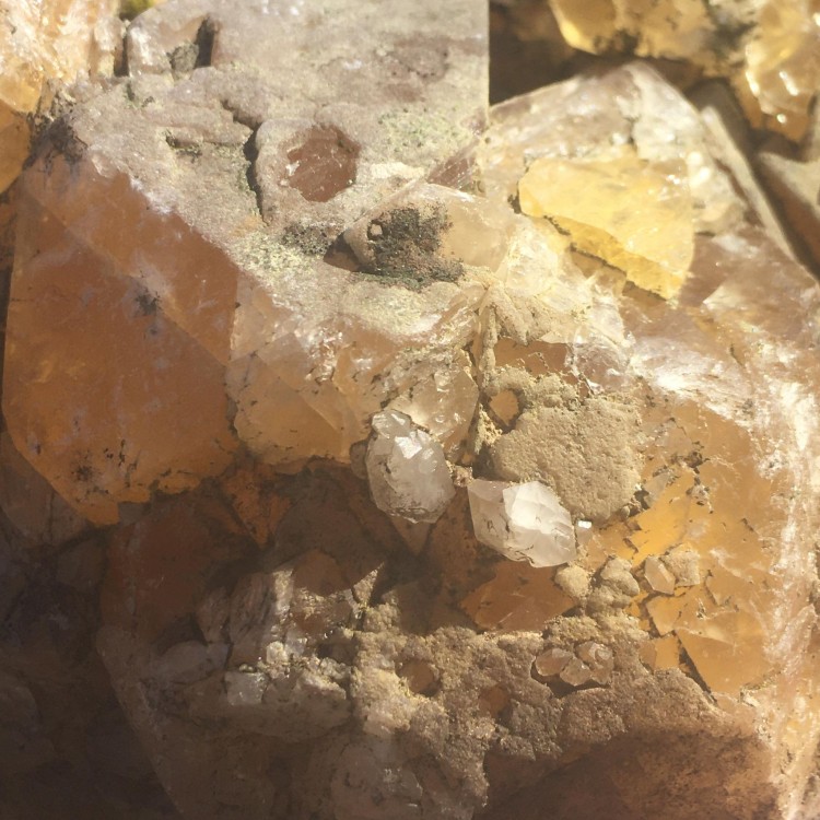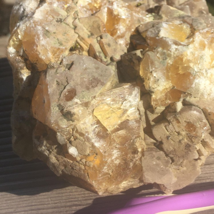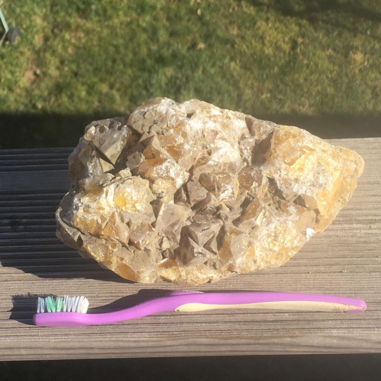 fluorite jaune mine de chavaniac , 180/ 100 présence de micro quartz blanc laiteux très abimée car long séjour dans un bac a fleurs, je l'ai juste passé au karcher. un conseil pour un nettoyage plus efficace ? ou est t'elle trop abimée ? merci -