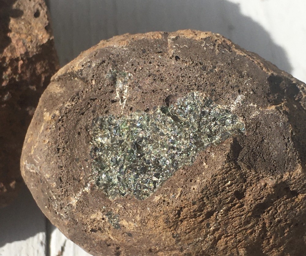 merci pour le lien, je ne l'avais pas vu celle là de discussion 😜 Clinopyroxène, c'est donc cela le joli vert émeraude. en effet les bombes velaves ce ressemble bien, mais il est difficile d'en trouver des intactes, la tienne parait bien plus lisse