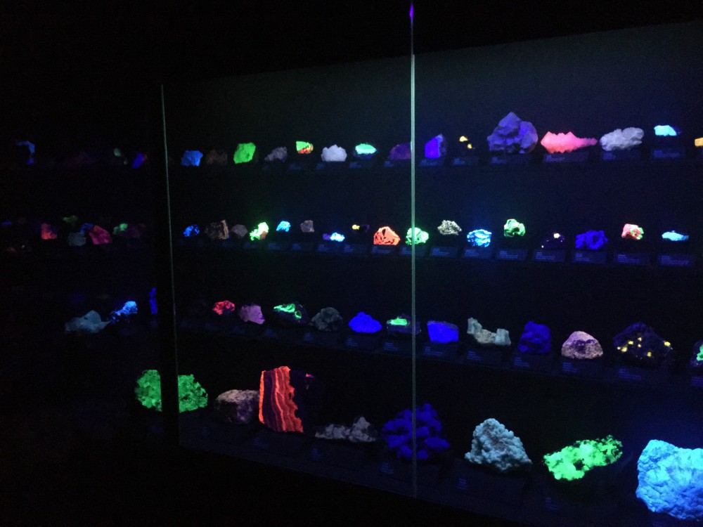 Voici quelques photos prise hier au musée de Prague ou ils consacrent une aile aux minéraux et météorites, tombé dessus par hasard je n'est bien sur pas l'appareil qu'il conviens pour réalisé de superbe cliché. je n'ai d'ailleurs pas tout photographier étant toute étourdie par ce que j'y voyais. c'est comme ça les novices ça s'étourdie vite. j'ai pu profiter d'une petite sale ou était mis en évidence la luminescence.