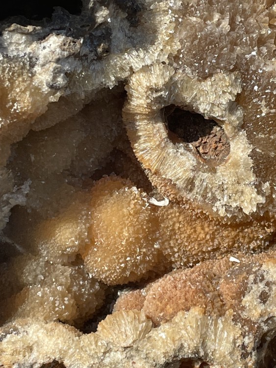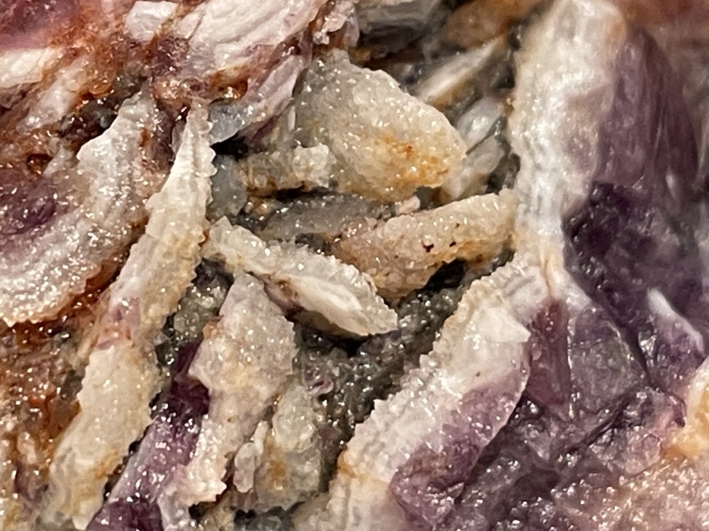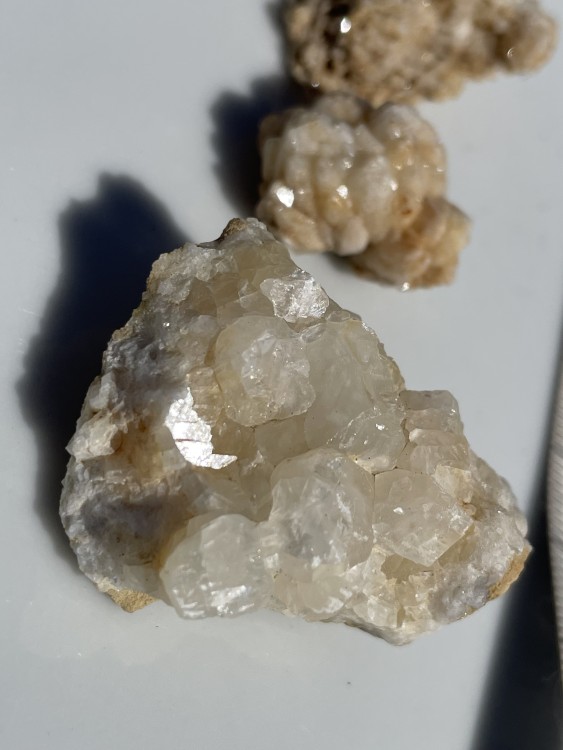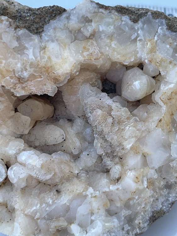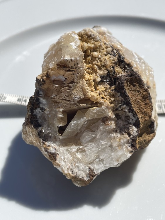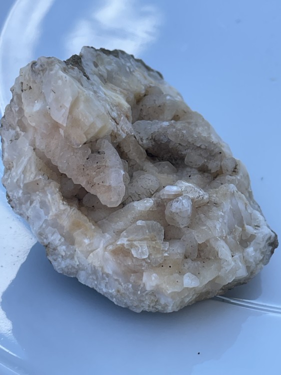 du quartz et de la calcite comme on en trouve au Bleymard, première trouvaille assez bizarre cette calcite ci dessus est devenue très laiteuse alors que la transparence etait magnifique, pourtant je les ai emballer de suite -