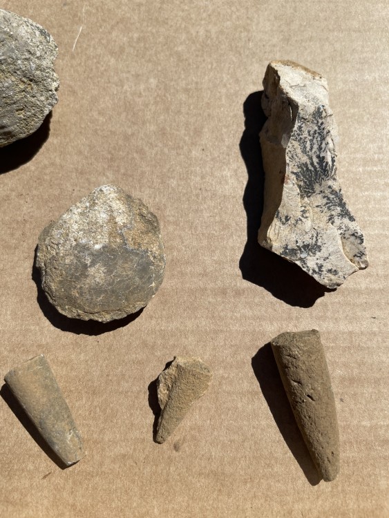 voici quelques clichés supplémentaire 1 géode, 2 vu de la coupe, et oui j'ai essayé de la coupé mais c'est très dense, sûrement pleine. 3 à 9 vu de la bizarrerie 10 et 11 rostre de belemnite, je sais c'est pas des minéraux mais je les ai trouvé dans la même couche. a l'opposer du Mazel. -