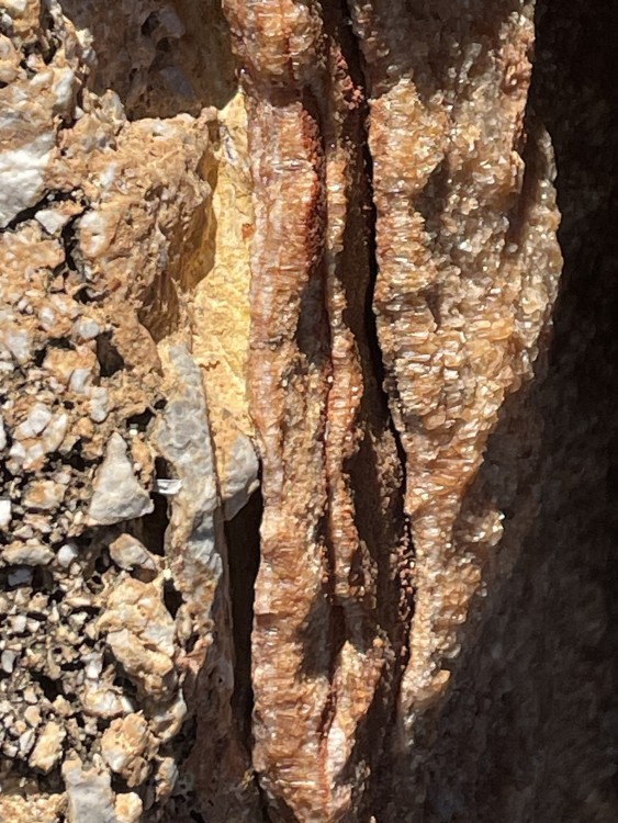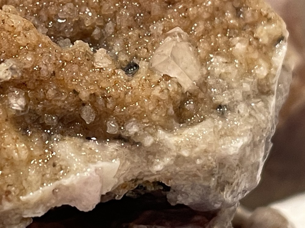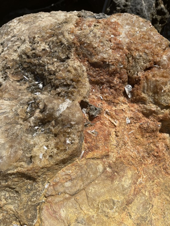 oui le scintillement est très fort, même a faible lumière. je doit chercher d'autres faille car le fossé a fini par être drainé et goudronner, mais oui les failles et affleurements ne manque pas. -