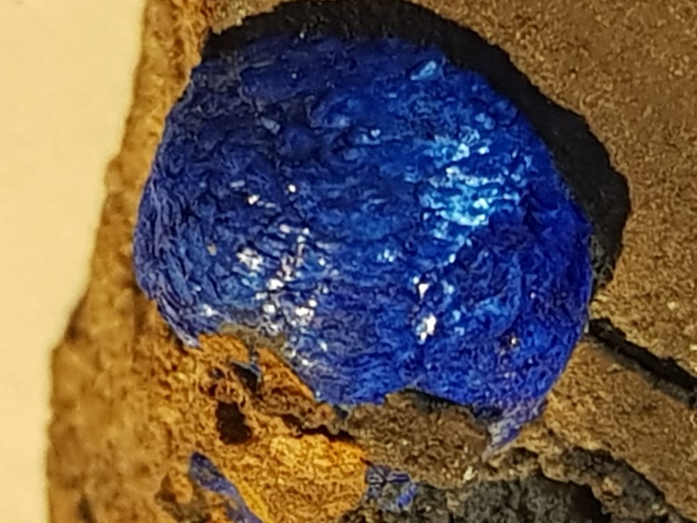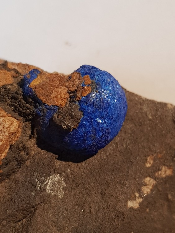 9. Bonjour, Reçu d'un ami qui ne ne connait plus la provenance, ce fragment de roche avec une protubérance de Cavansite d'après lui. cette pièce fait 6cm X 5cm épaisseur 3cm poids 37 gr J'aimerais avoir votre avis. Merci d'avance de vos réponses