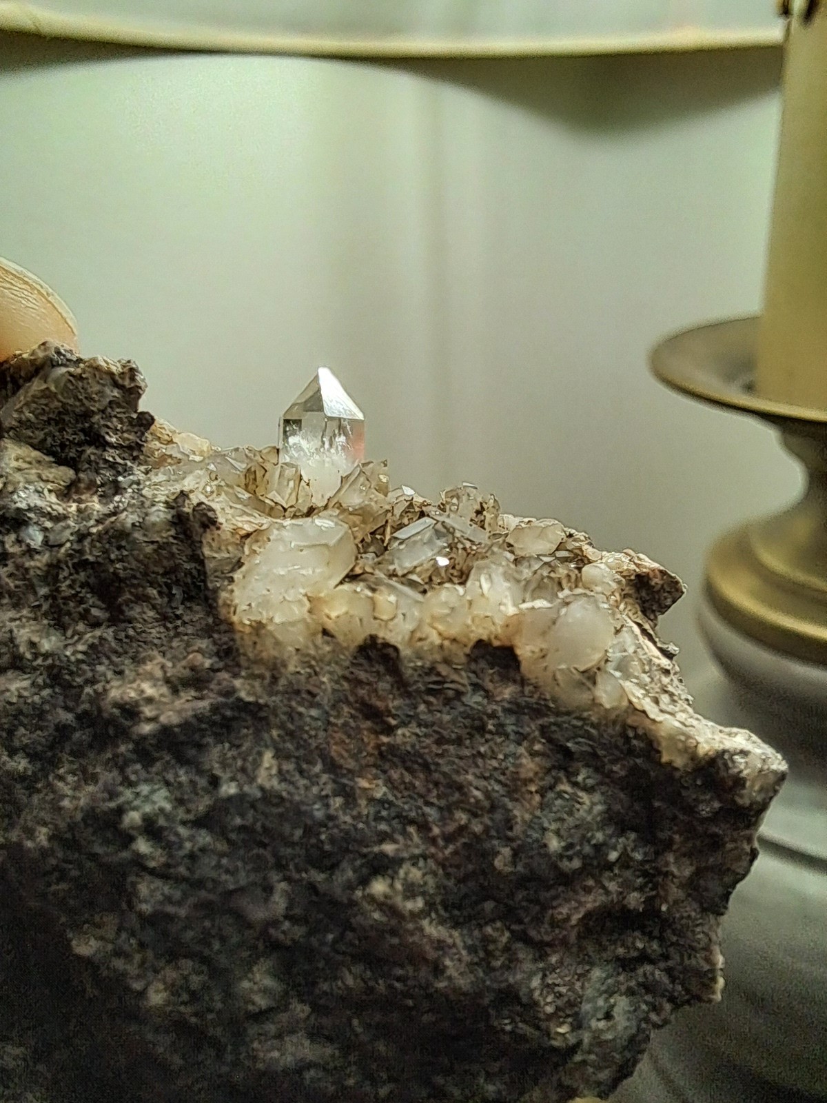 Petite trouvaille lors d'une prospection du côté de Barr (Alsace), un Quartz sceptre avec seconde génération légèrement amethysé. -