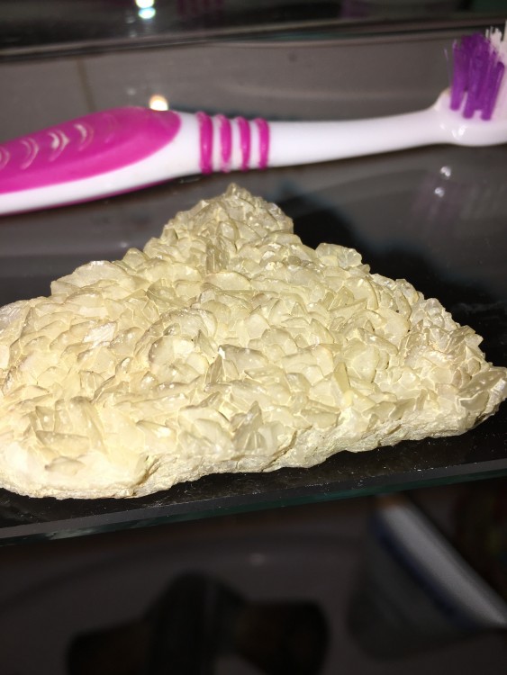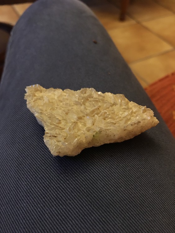 D’accord: alors je me suis trompé sur sa provenance il vient de haute-savoie et je l’ai trouvé à Seythenex sur un chemin et aval du flanc des roche de la montagne.Et elle ne réagit pas à l’acide donc à ce que j’ai compris non calcaire.