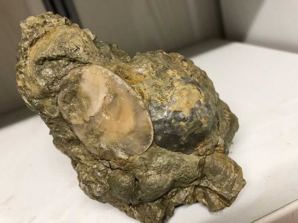 bonjour j'ai enfin eu l'occasion de faire un tour en Normandie et de découvrir les falaises de vaches noires Outre la collecte habituelle de toutes les dérivées d'huitres, un objet attire mon oeil : se pourrait il que se soit un ossement? merci pour votre aide! -
