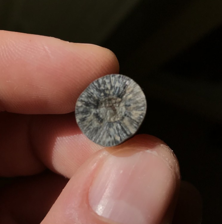 merci pour ta recherche! donc un cas semble réglé! comme demandé, voici une photo de la coupe transversale de ce que je pense être un belemnite Quant au 2nd fossile, pas d'idée? ce qui est étrange c'est qu'il y en avait plusieurs similaires.... -
