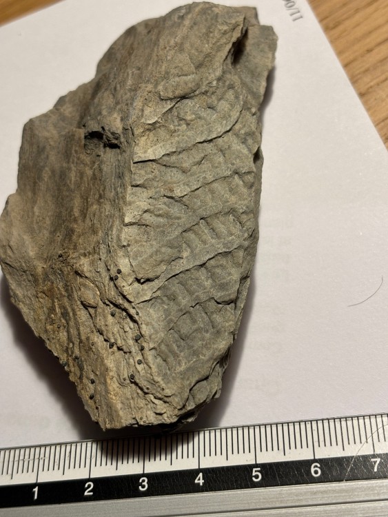 Bonjour petit passage en moselle ce weekend dans le trias parti pour trouver des ceratites je me suis trouver à ne trouver que cette plaque fossilisée... certainement une plante... mais laquelle??? merci pour vos lumières Ps : si vous avez un coin à cératites... -